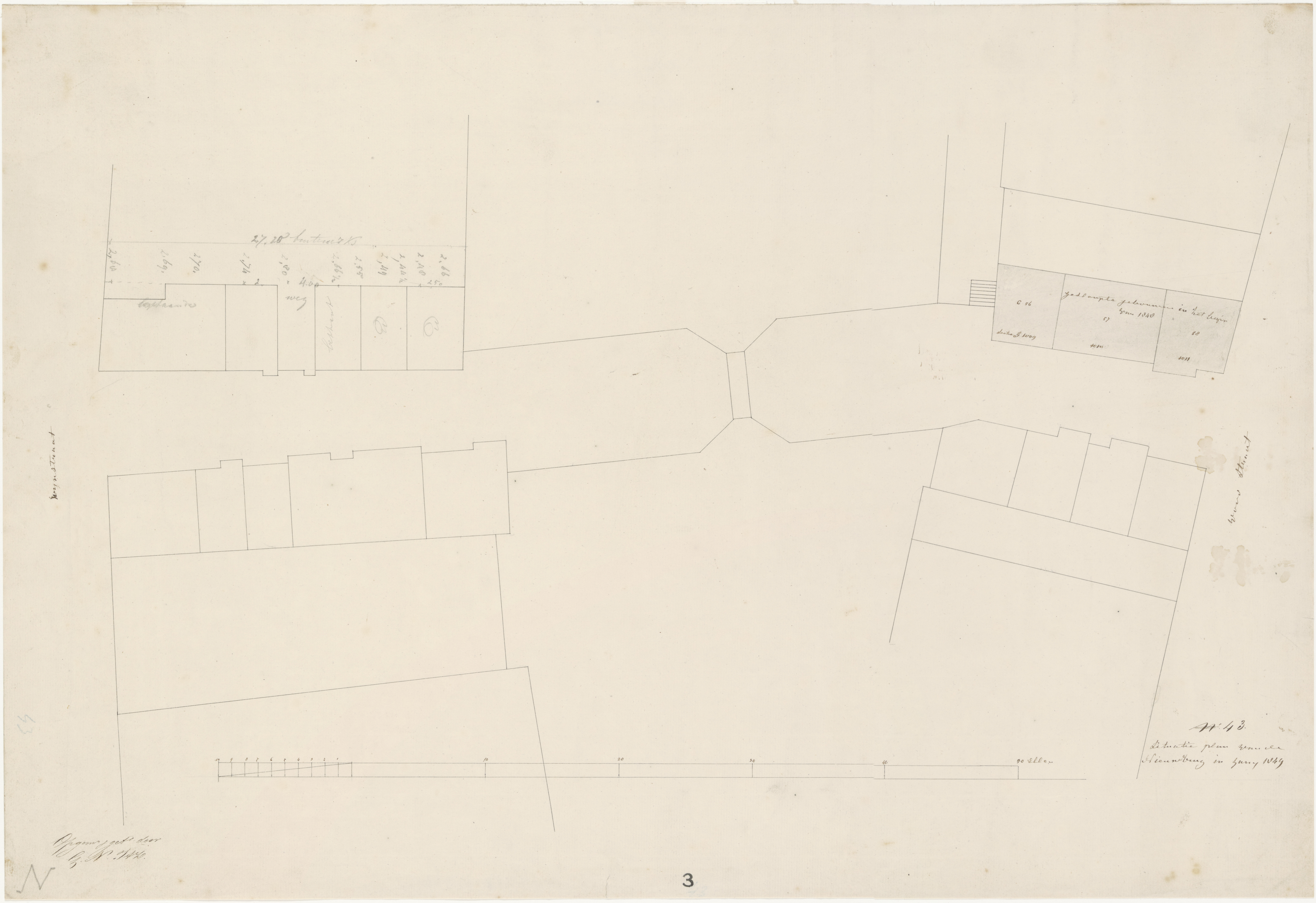 Plattegrond van de Nieuwbrug en toevoerende straten tussen de Voorstraat en de …
