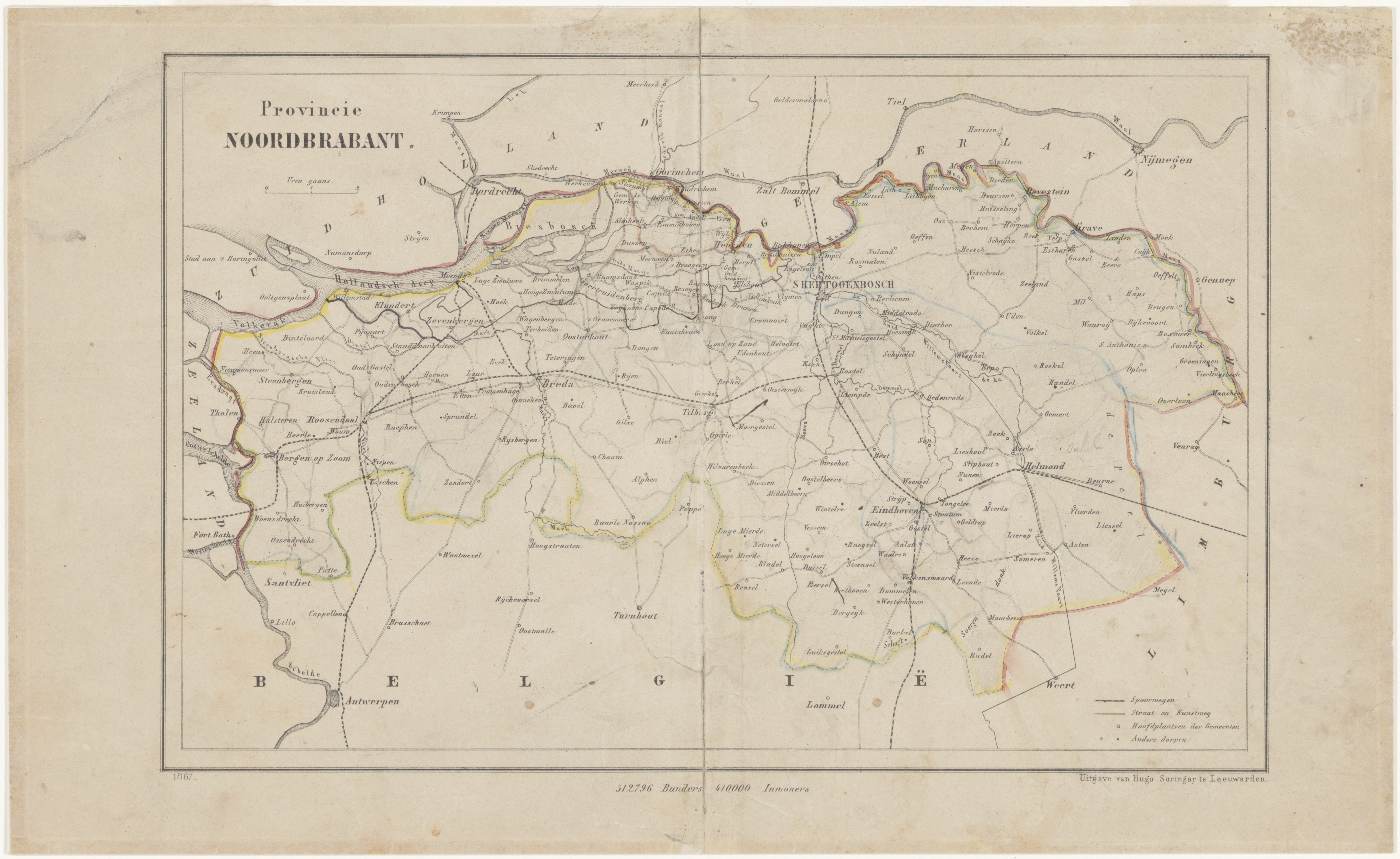 - Kaart van de provincie Noord-Brabant, met aanduiding van het deel van de provincie dat door de historisch-topografische atlas van het Dordtse gemeentearchief bestreken wordt. Tevens zijn de gemeentegrenzen aangeduid.