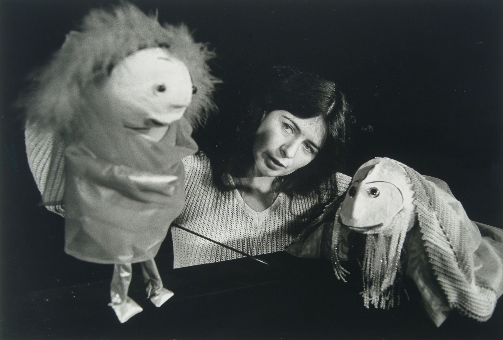 - Poppenspeelster Damiët van Dalsum met twee van haar poppen