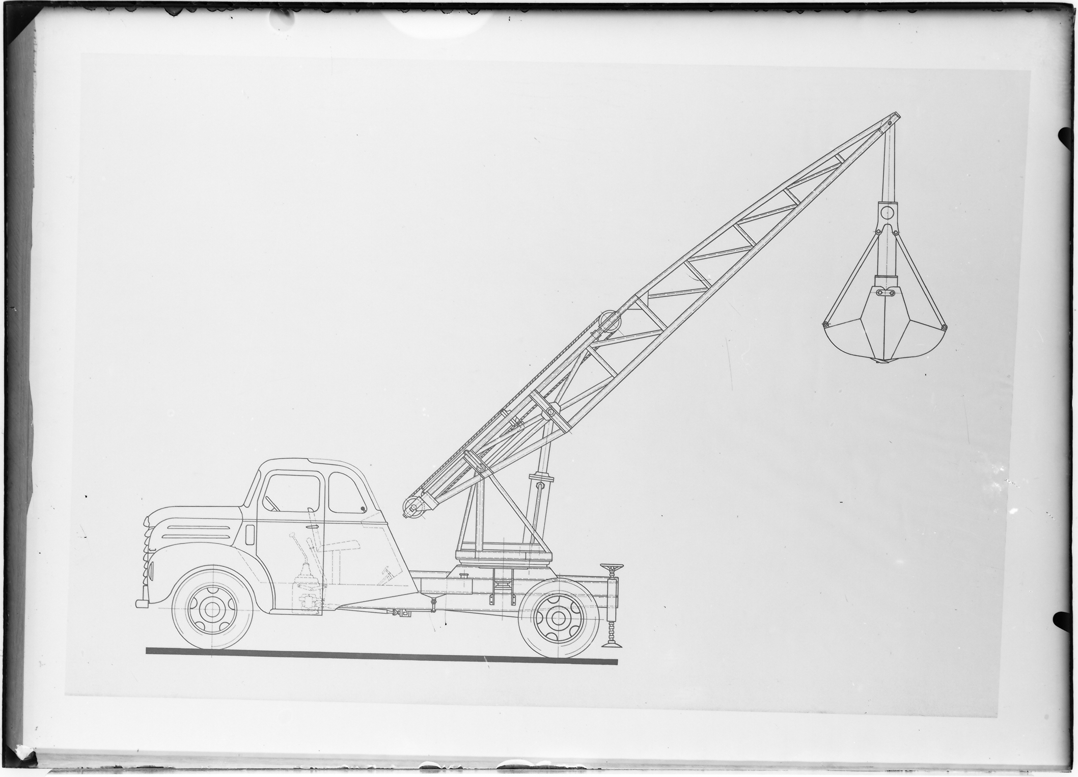 Bouwtekening firma Bos, fabrikant in zandtrechters kiepwagens en rijdende kranen, aan …