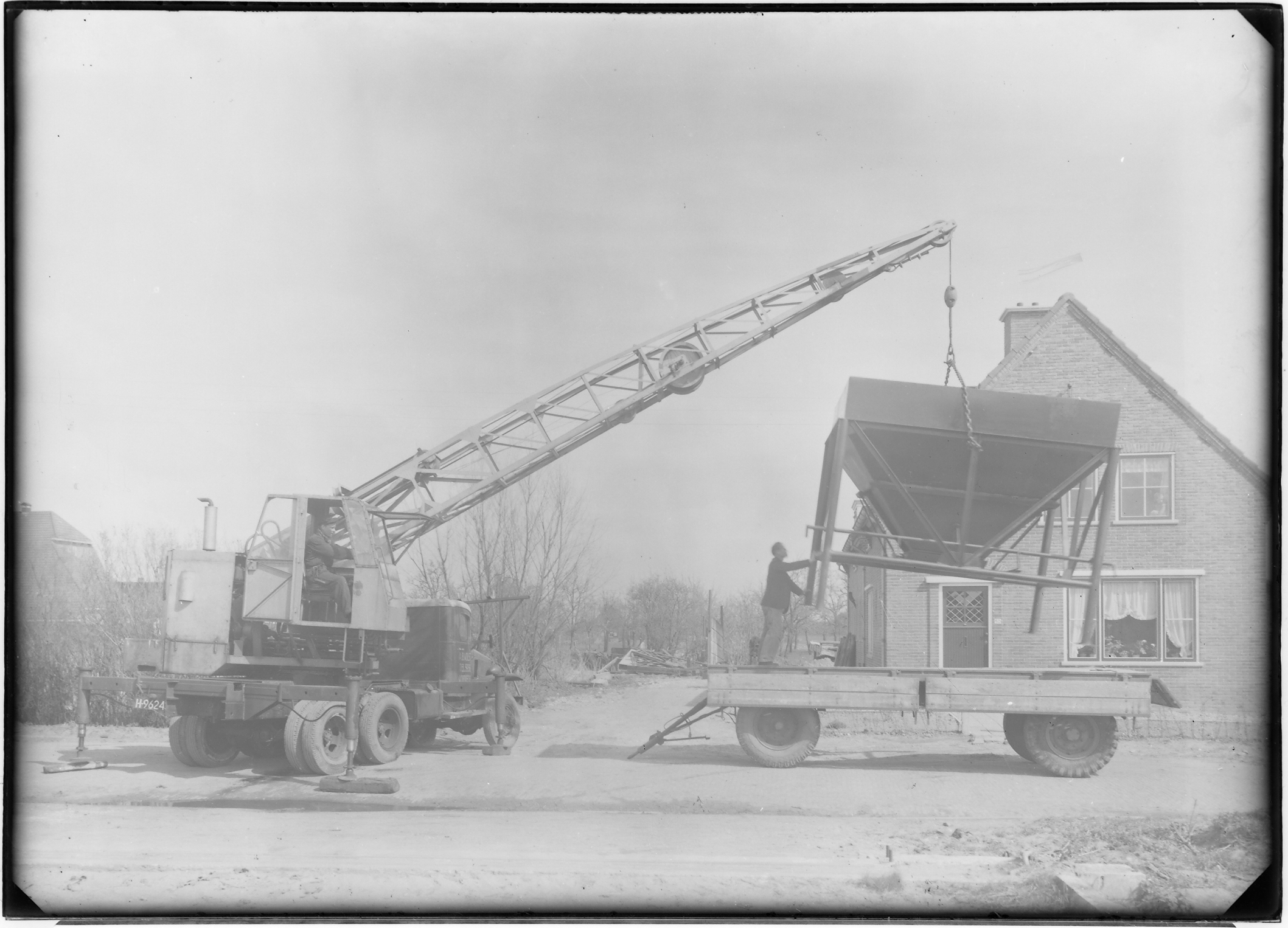 Firma Bos, fabrikant in zandtrechters kiepwagens en rijdende kranen, aan de …