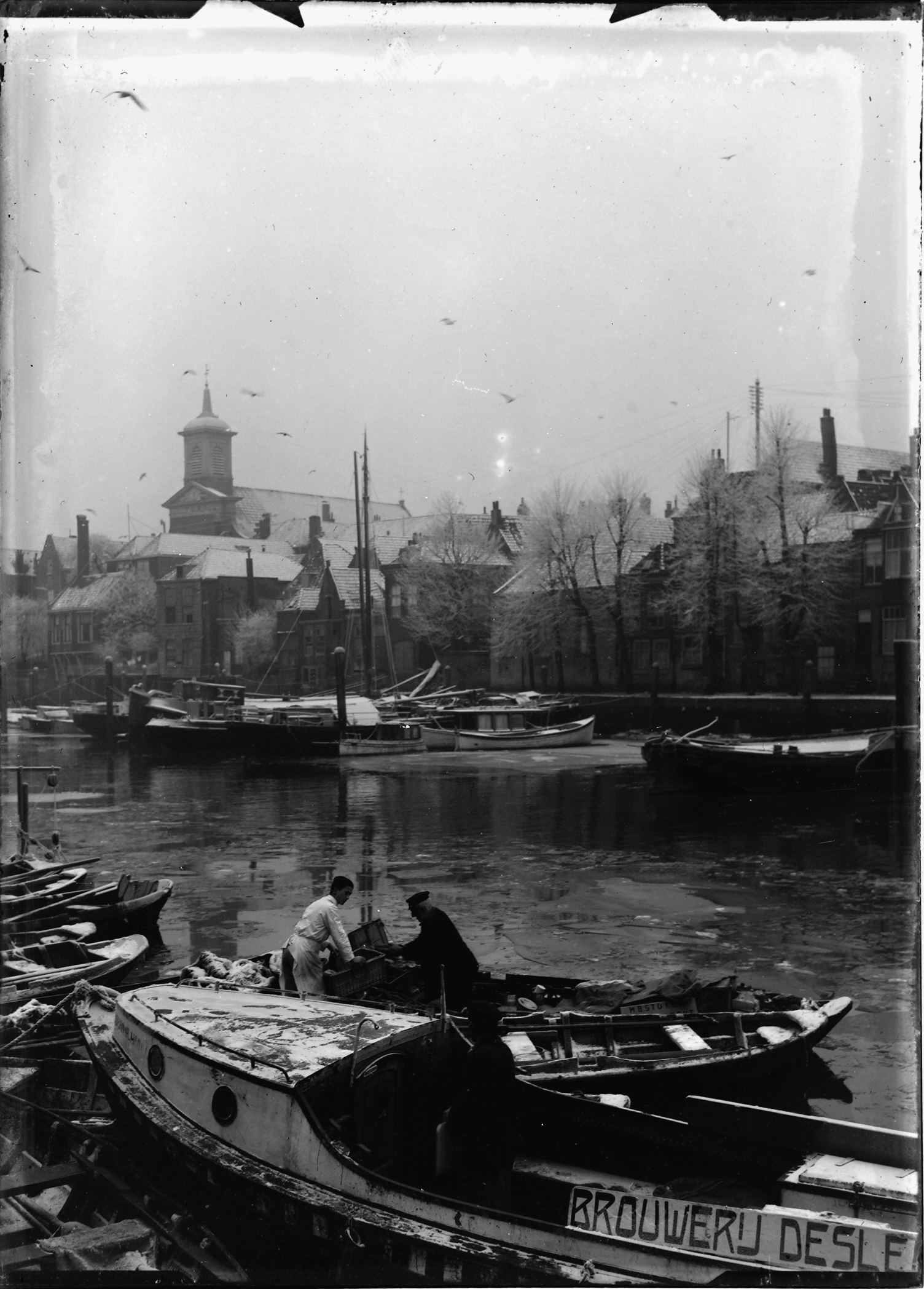 De Wijnhaven vanaf de Taankade naar het zuidwesten richting Bonifatiuskerk gezien.