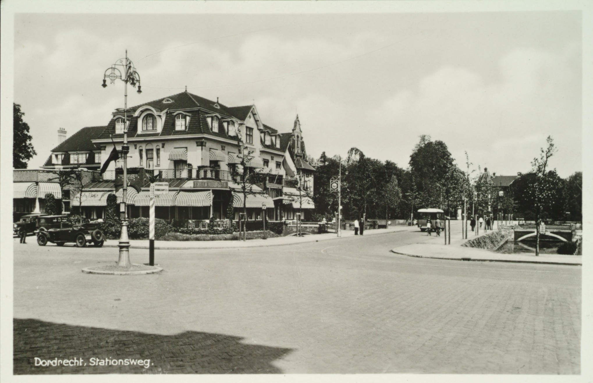Stationsweg, kruising Burgemeester de Raadtsingel, waarschijnlijk omstreeks 1935.