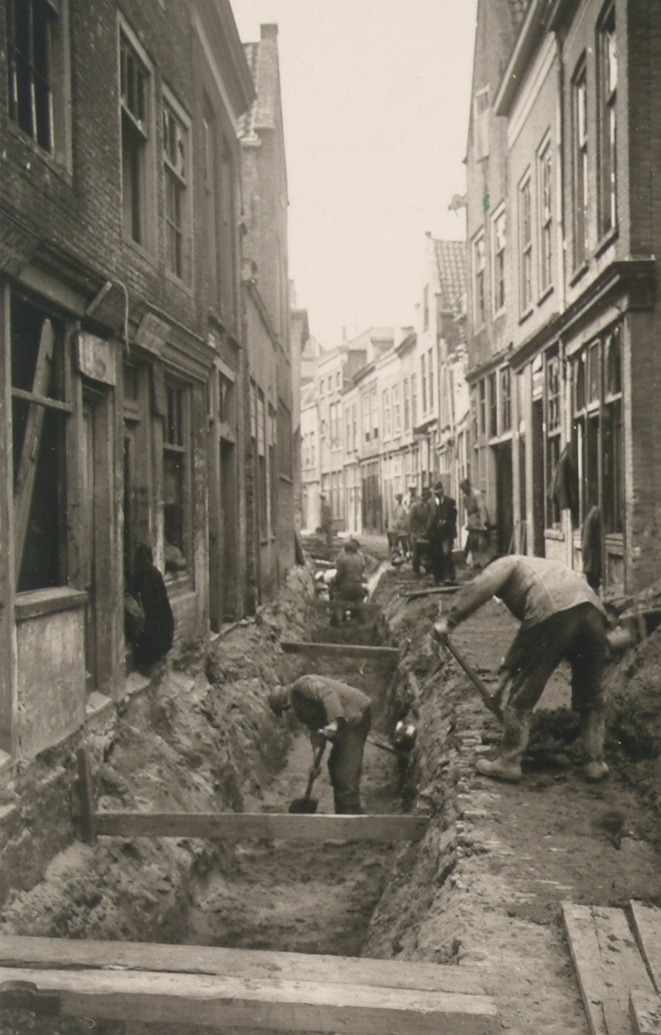 - Graven van een sleuf voor een elektriciteitskabel in de Torenstraat