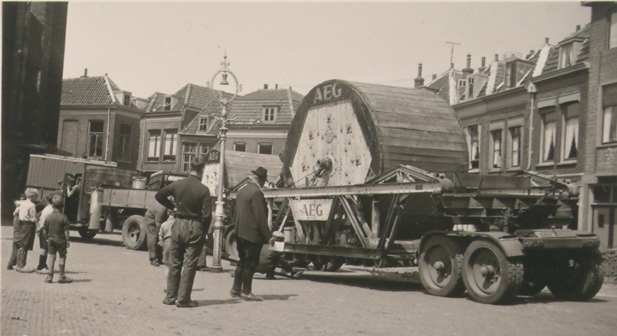 - Transport van een elektriciteitskabelhaspel over het Nieuwkerksplein