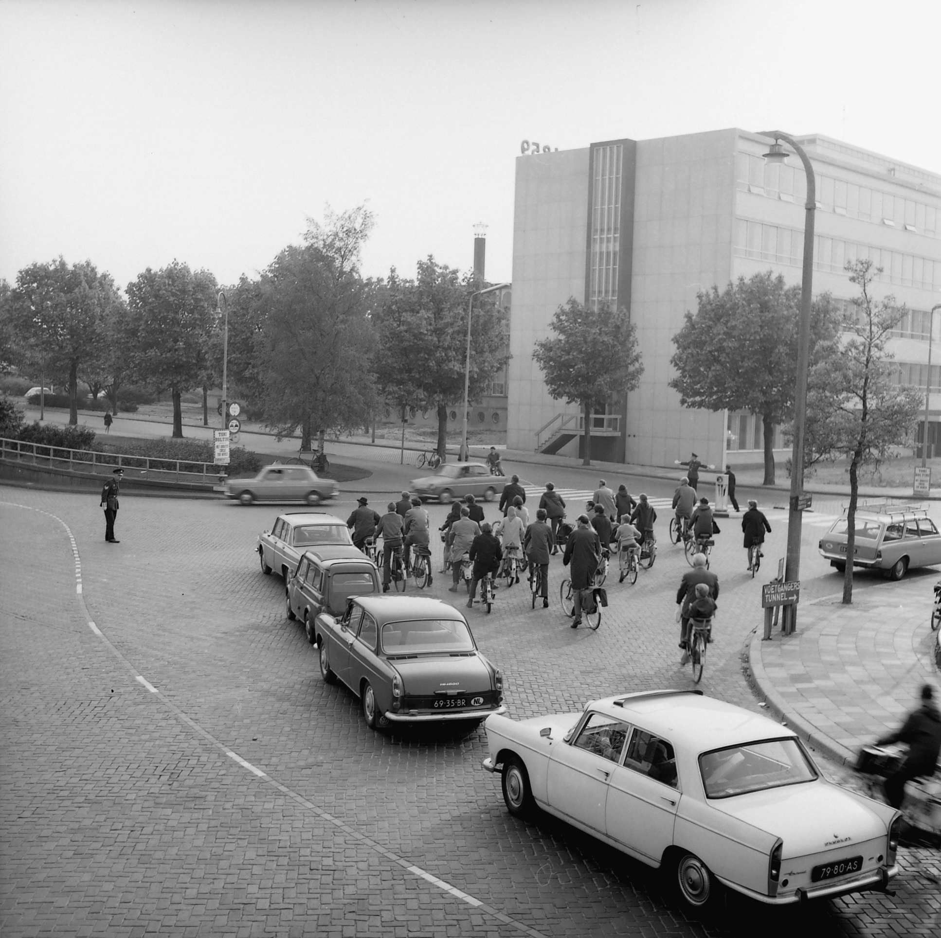 - Politieagenten regelen het verkeer bij de Krispijntunnel (links). Rechts de Kilwijkstraat, de Spuiweg op de voorgrond.