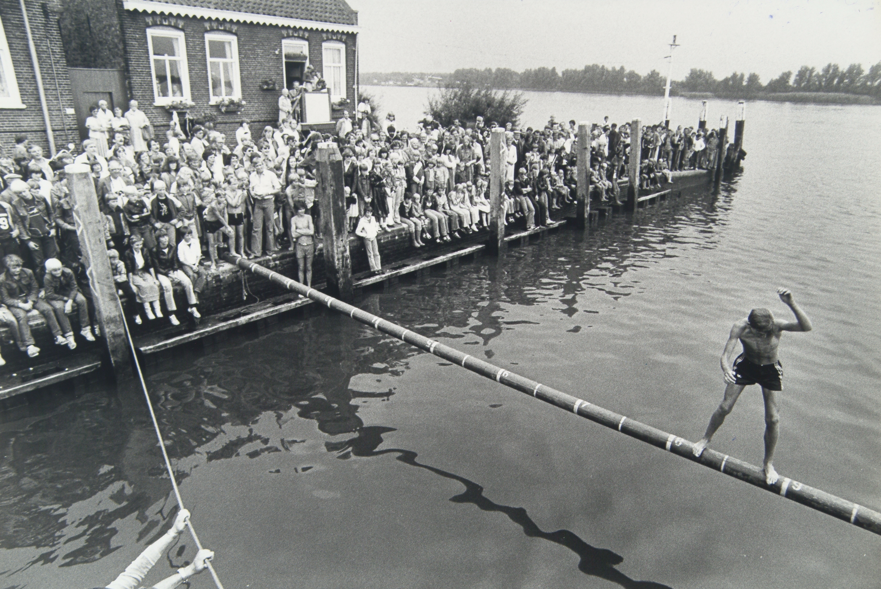 - boegsprietvechten dukdalven / meerpalen havens publiek / toeschouwers sport en spel