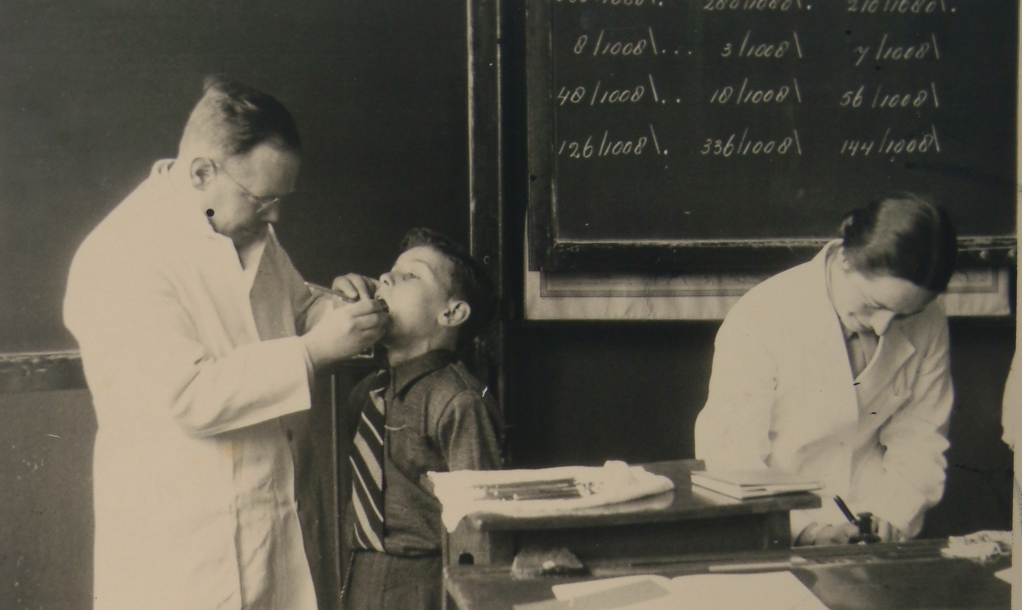 - Schooltandarts Hendriks met assistente M.J. Schillemans