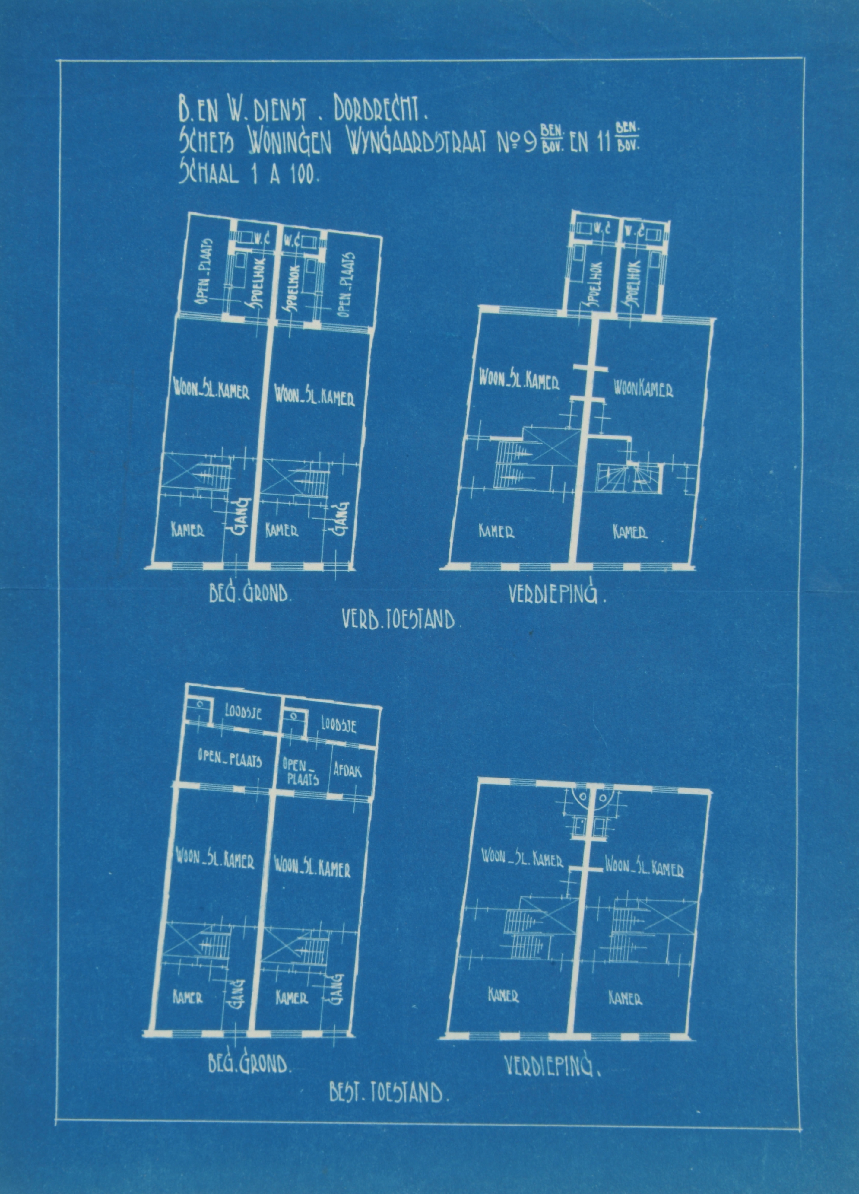 Schets van woningen aan Wijngaardstraat nrs. 9 en 11 in bestaande en in verbouwde …