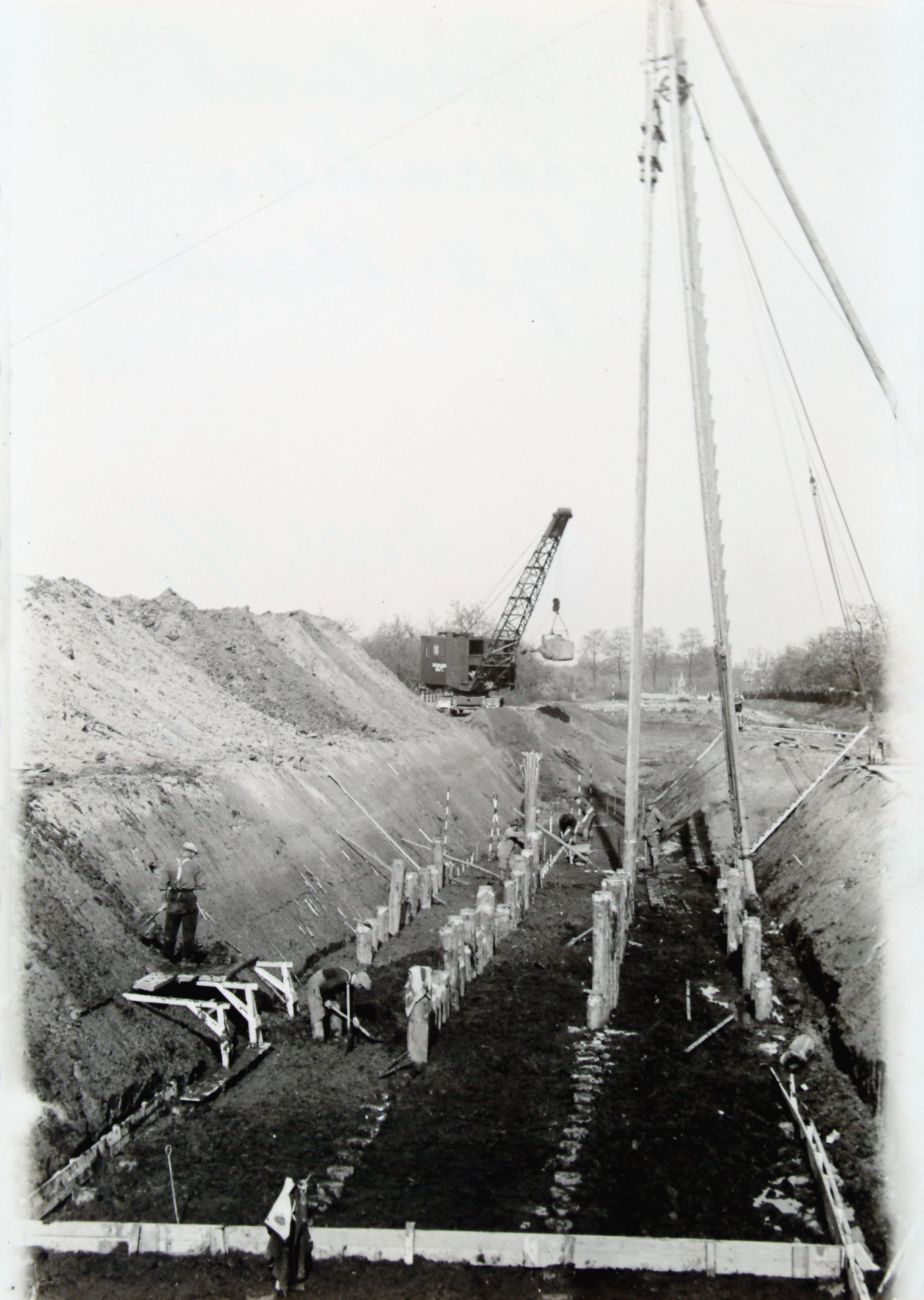 - Rioleringswerkzaamheden aan de Straatweg voor de 1e Tol ter vervanging van de Vuile Vliet, gezien van de Straatweg naar de Brouwersdijk. Midden door de boomgaard komen de rioleringskanalen. Op de achtergrond Weizigt aan de Krispijnseweg.