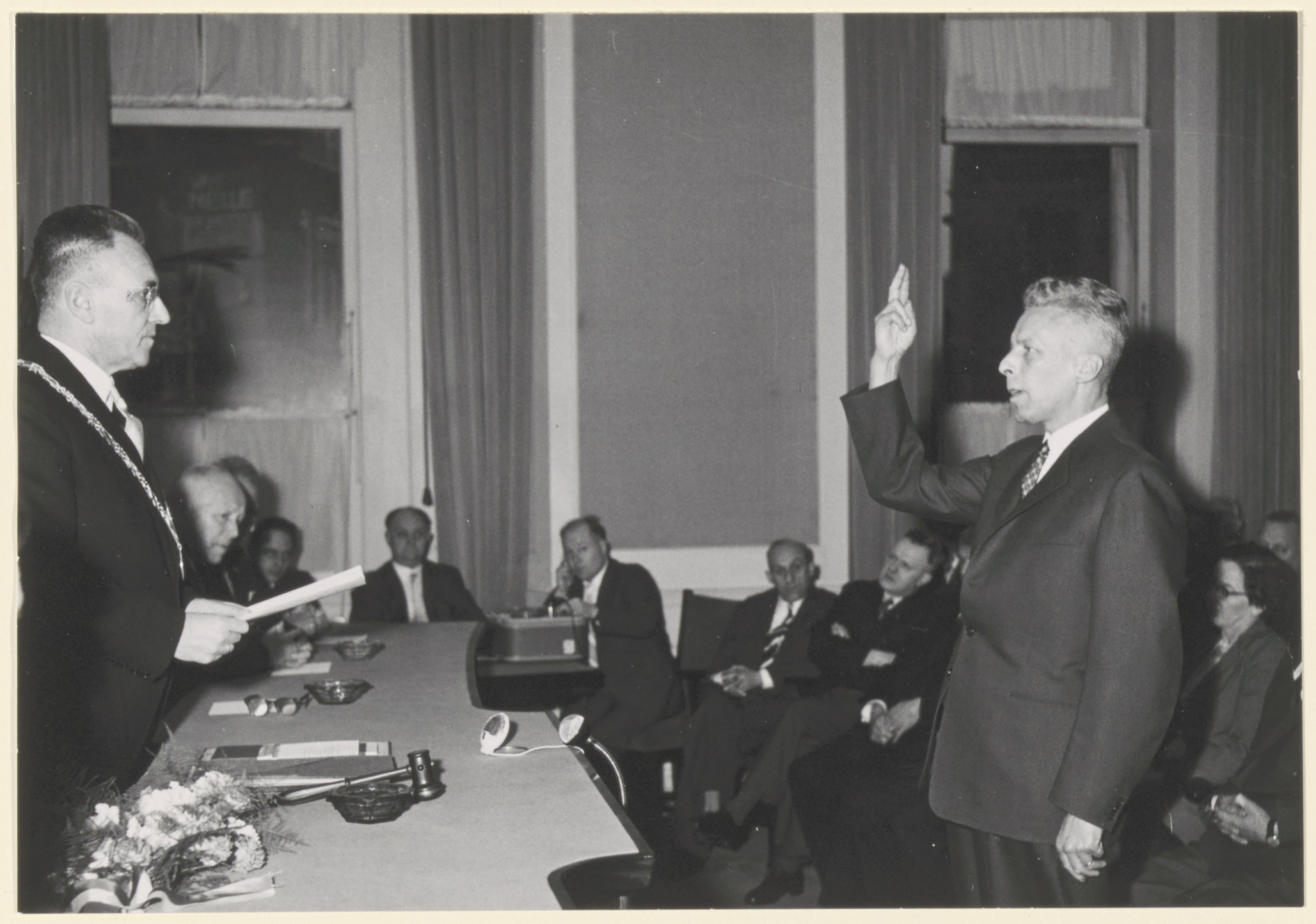 De eedaflegging door Mr. J.P.A. v.d. Hoeven als secretaris van burgemeester J.A.H.J. van der Dussen.