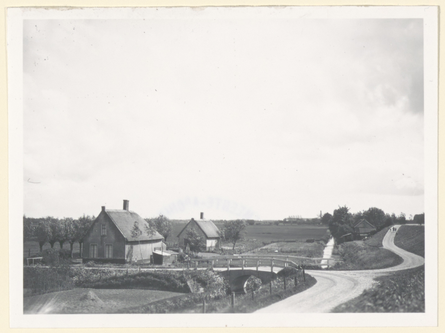 Wieldrechtse Zeedijk langs de Dordtsche Kil in zuidelijke richting. De weg naar links is de Kilweg. De arbeidershuisjes zijn van hoeve Krab en Landzicht (niet zichtbaar). Op de achtergrond de pijp van gemaal Mr. J. Loudon, later gemaal Wieldrecht.