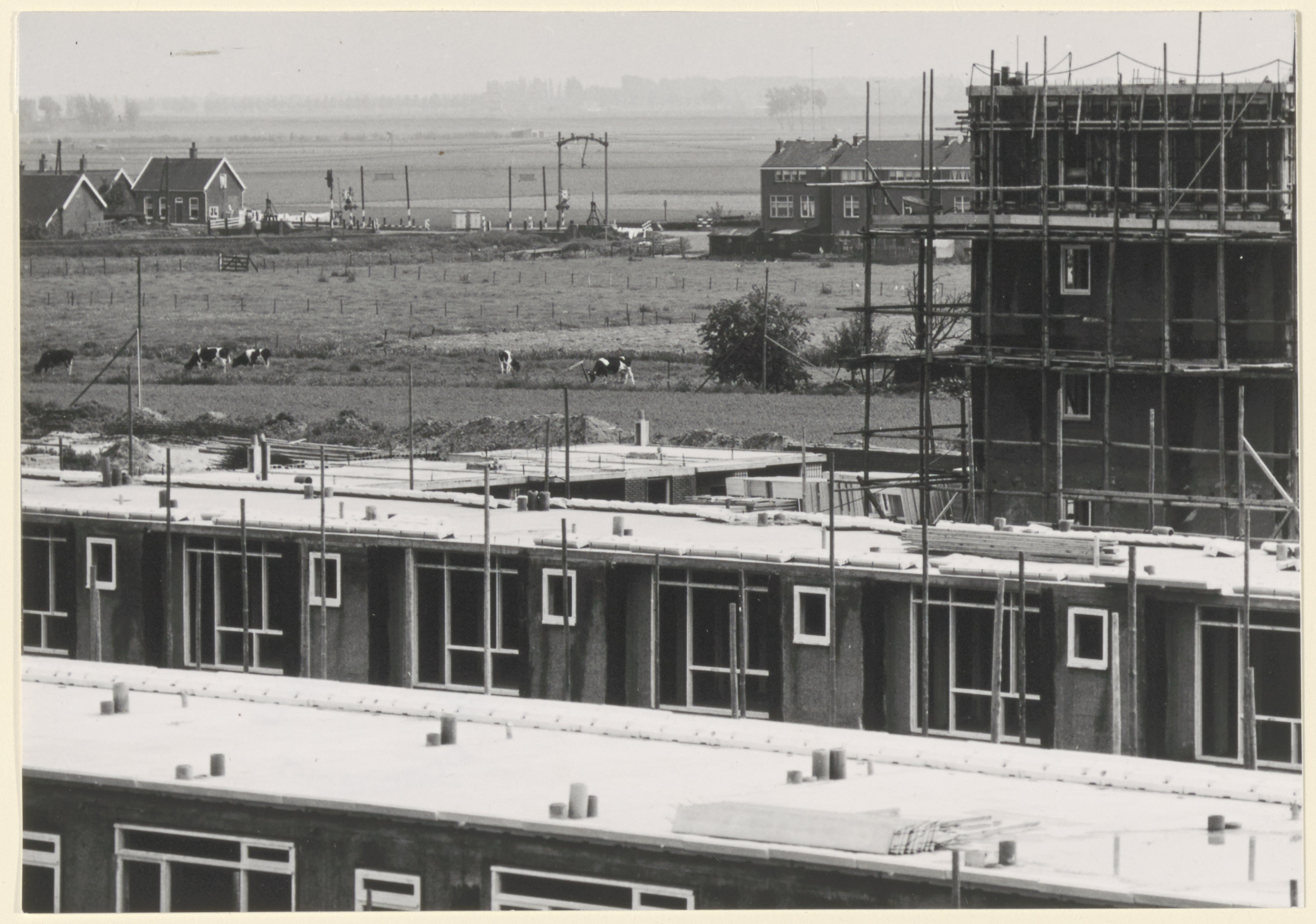 - Nieuwbouw van het stadsgedeelte Wielwijk met op de achtergrond de spoorwegovergang in de Zuidendijk.