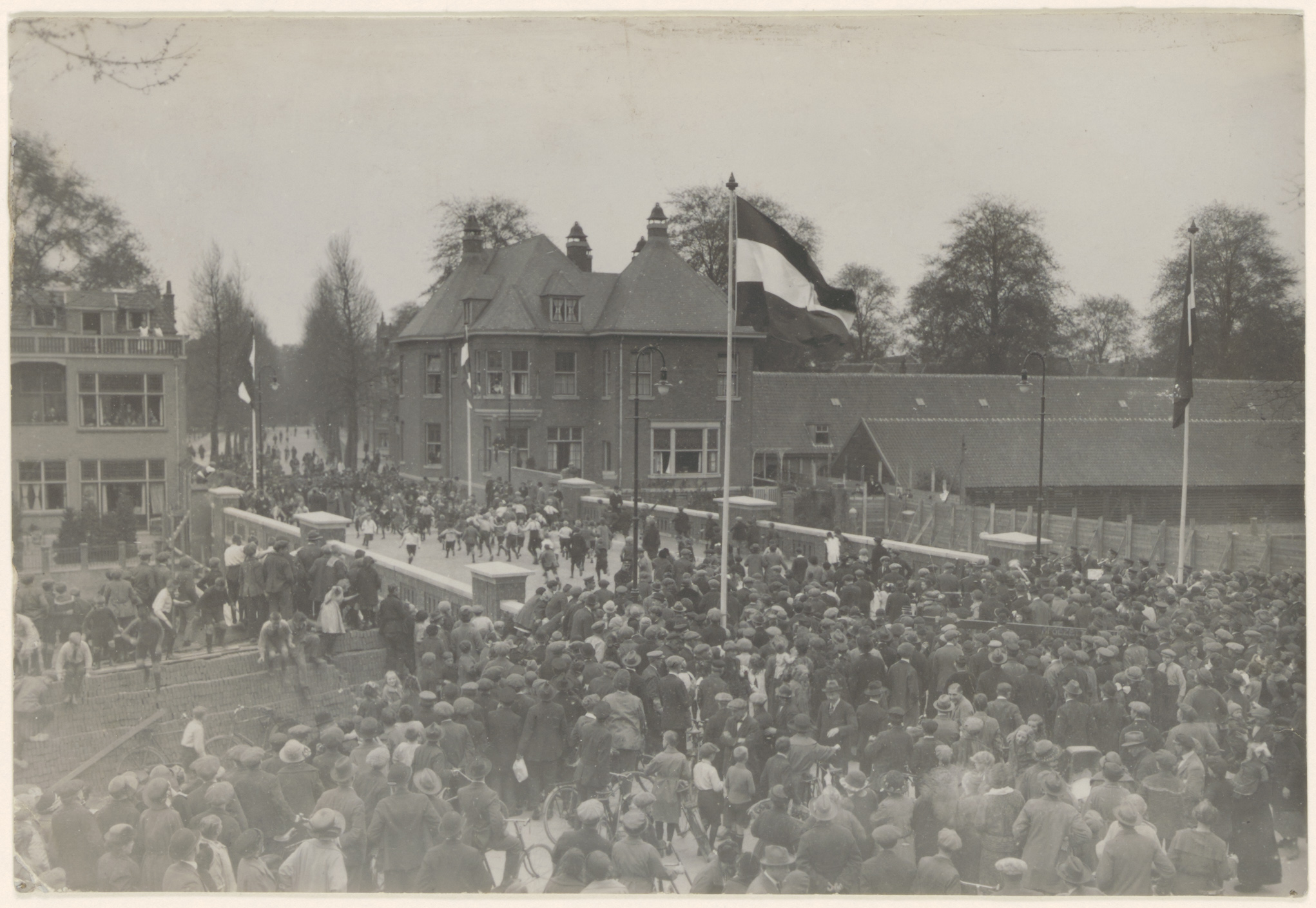bruggen militaire gebouwen openingen publiek / toeschouwers vlaggen(stokken)