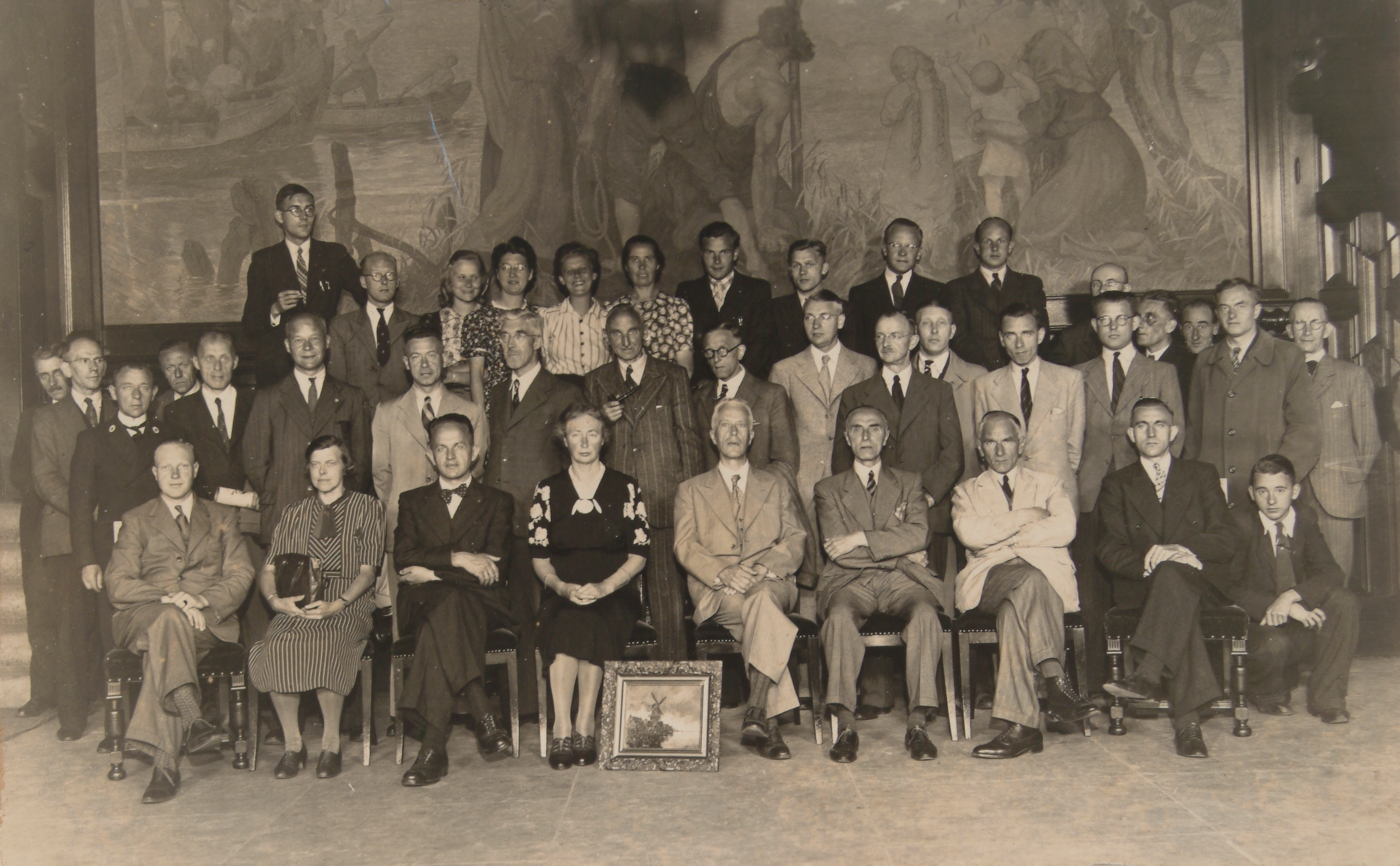 - Groepsportret gemaakt bij het afscheid van M.D. Snoeck, chef van de afdeling registratuur, in de Kennedyzaal van het stadhuis