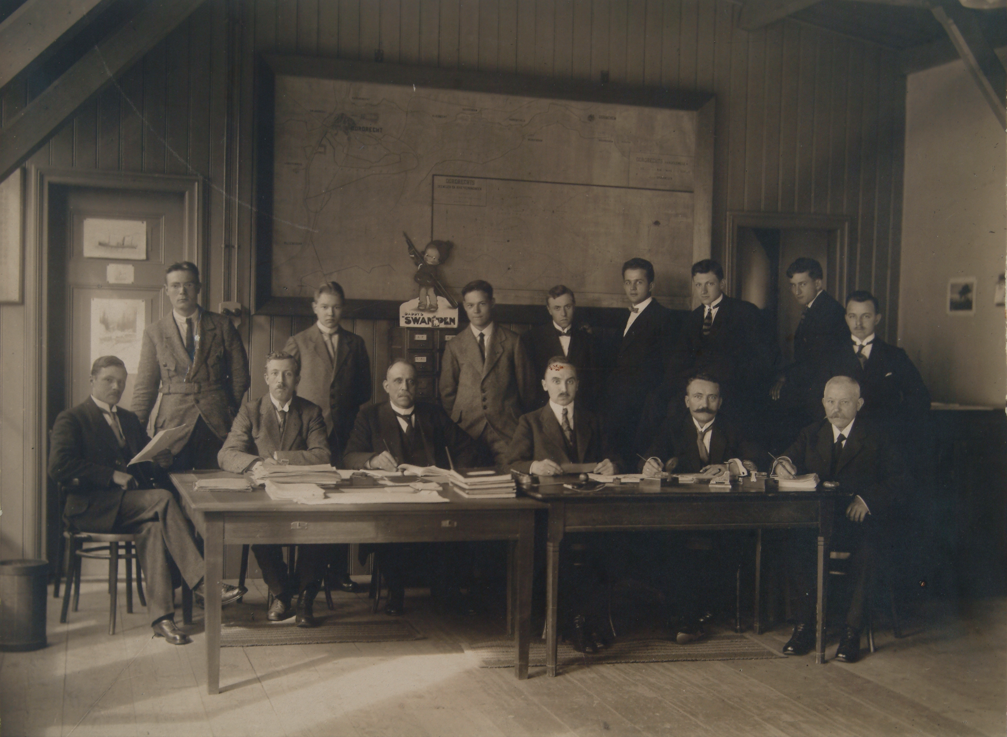Groepsportret van het personeel van de afdeling belastingen van de gemeente Dordrecht