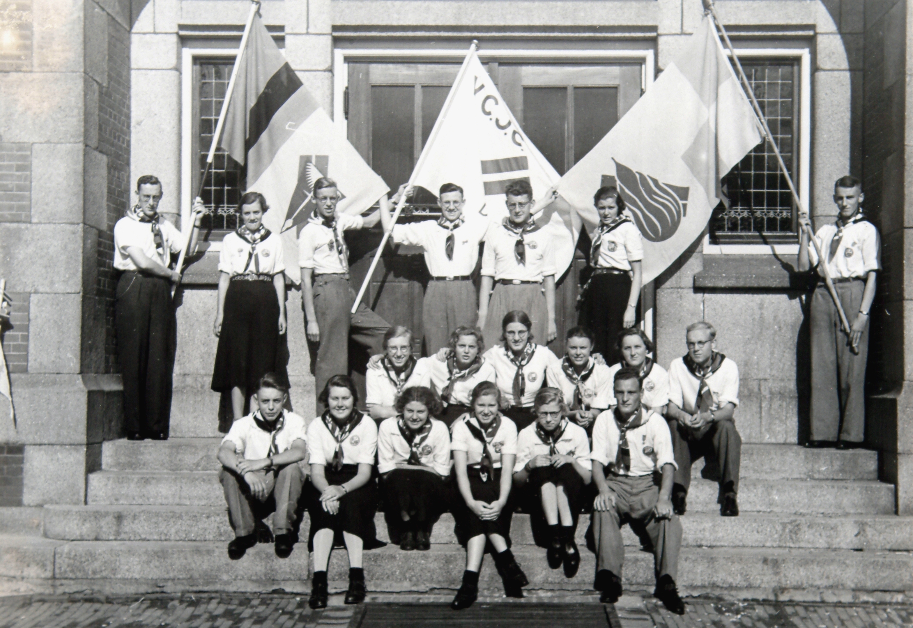 - Jeugddemonstratie van V.C.J.C. voor de ingang van de H.B.S. in het Oranjepark t.g.v. de huldiging voor het 40-jarig regeringsjubileum van koningin Wilhelmina in Amsterdam.