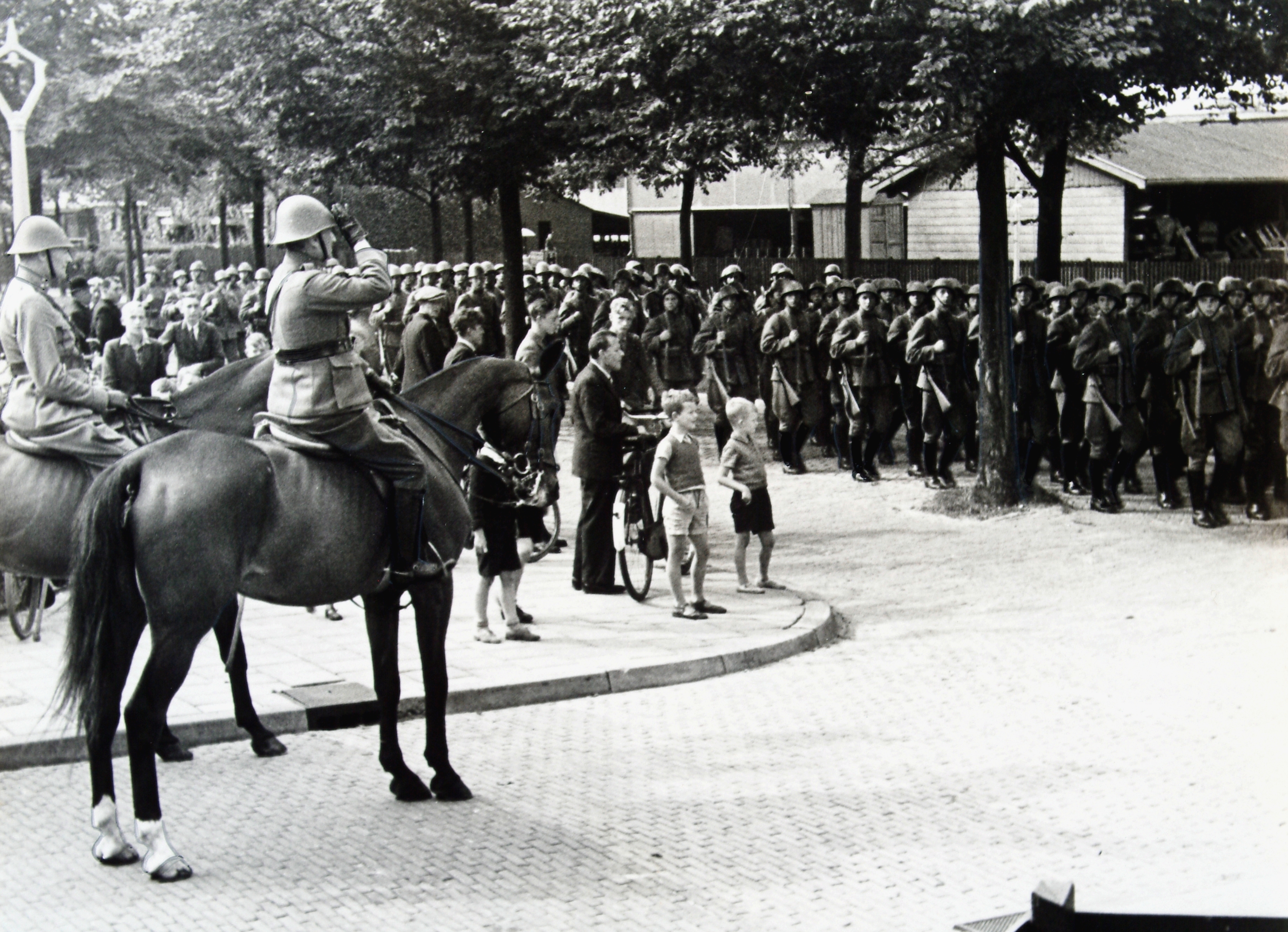 Garnizoenscommandant overste Mussert houdt generale repetitie in de Maasstraat voor de …