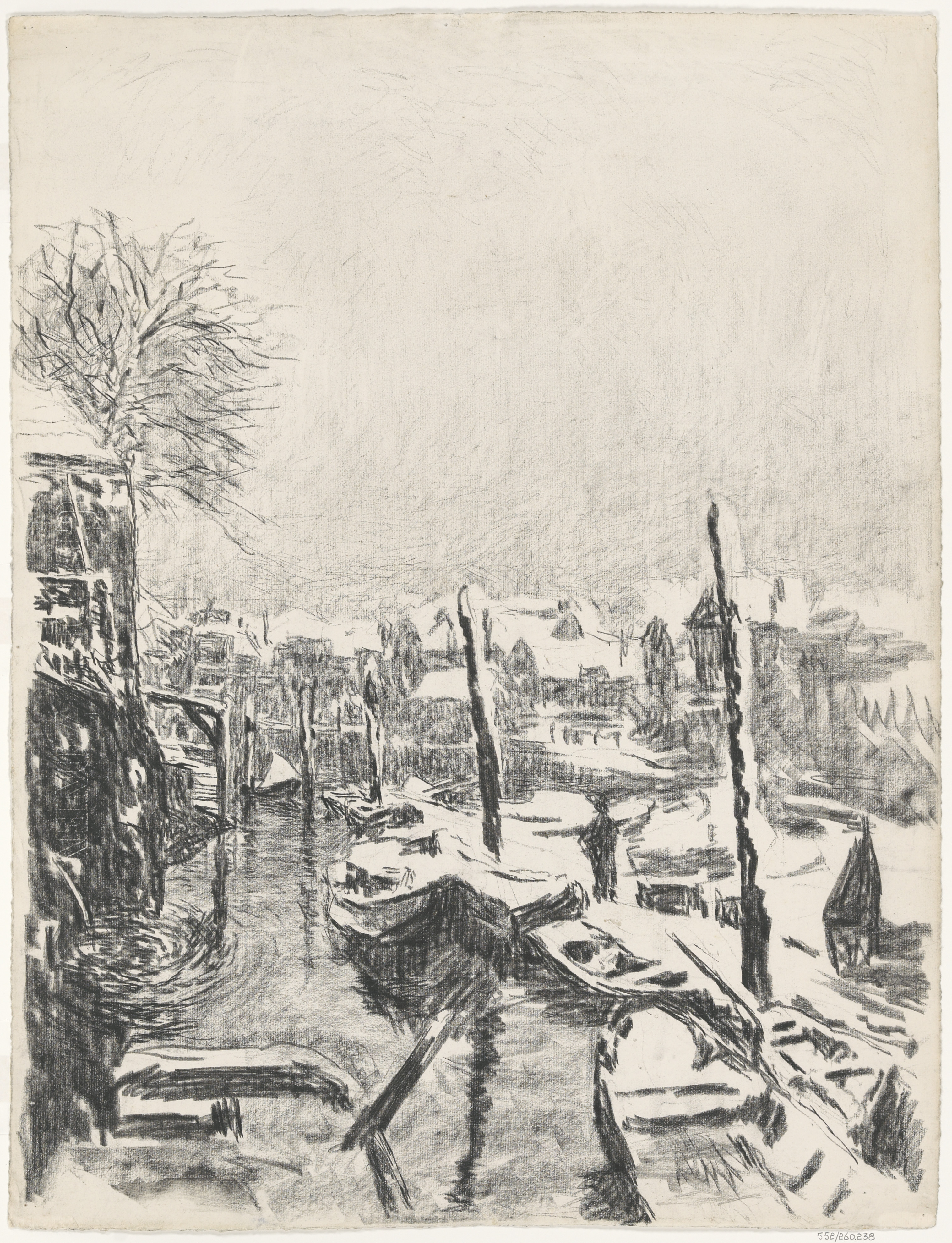 - De Wijnhaven in de winter, gezien vanaf de Taankade naar de Nieuwbrug.