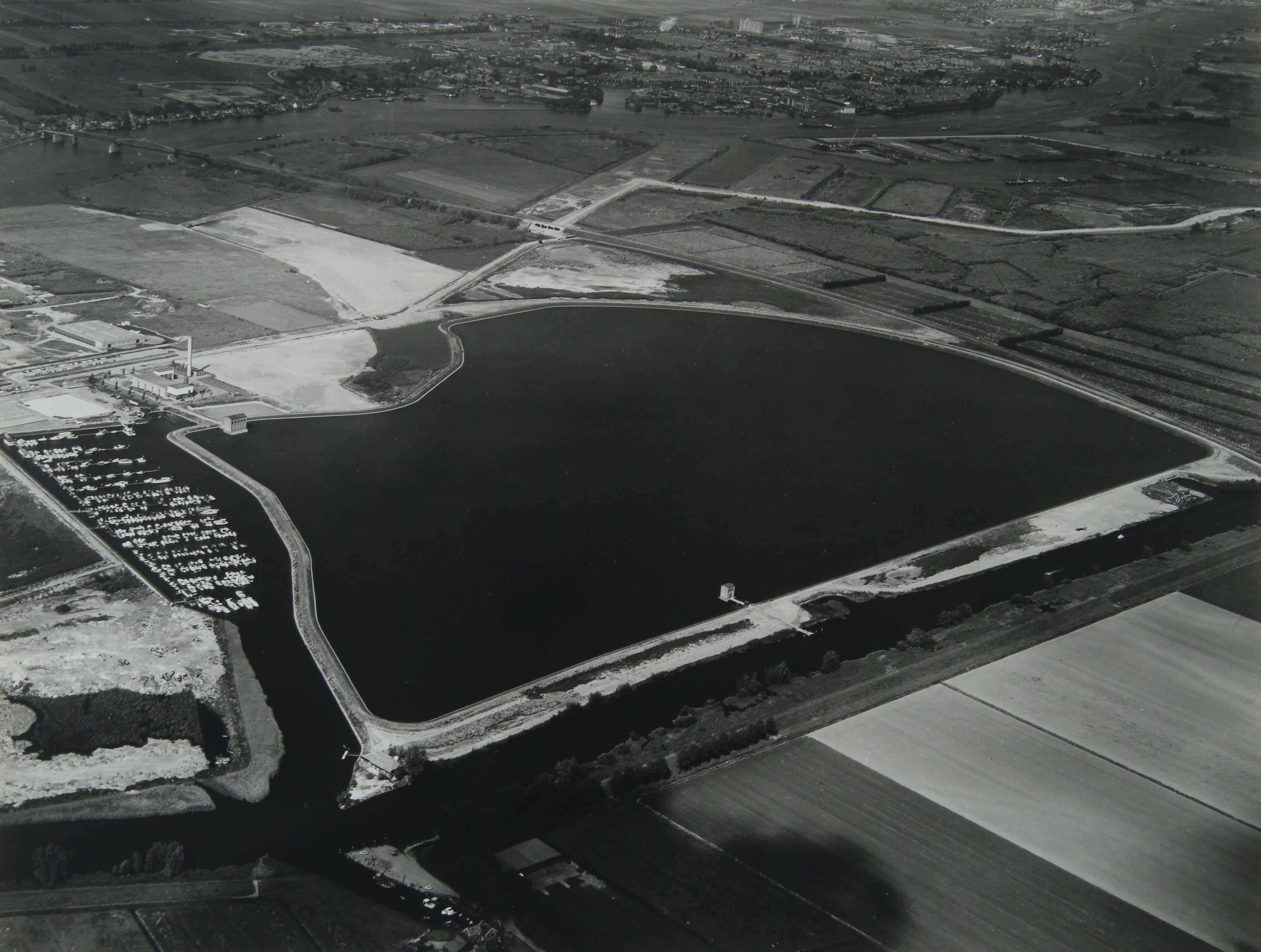 Spaarbekken de Grote Rug aan de Baanhoekweg. Onderaan de Loswalweg, links de Westergoot
