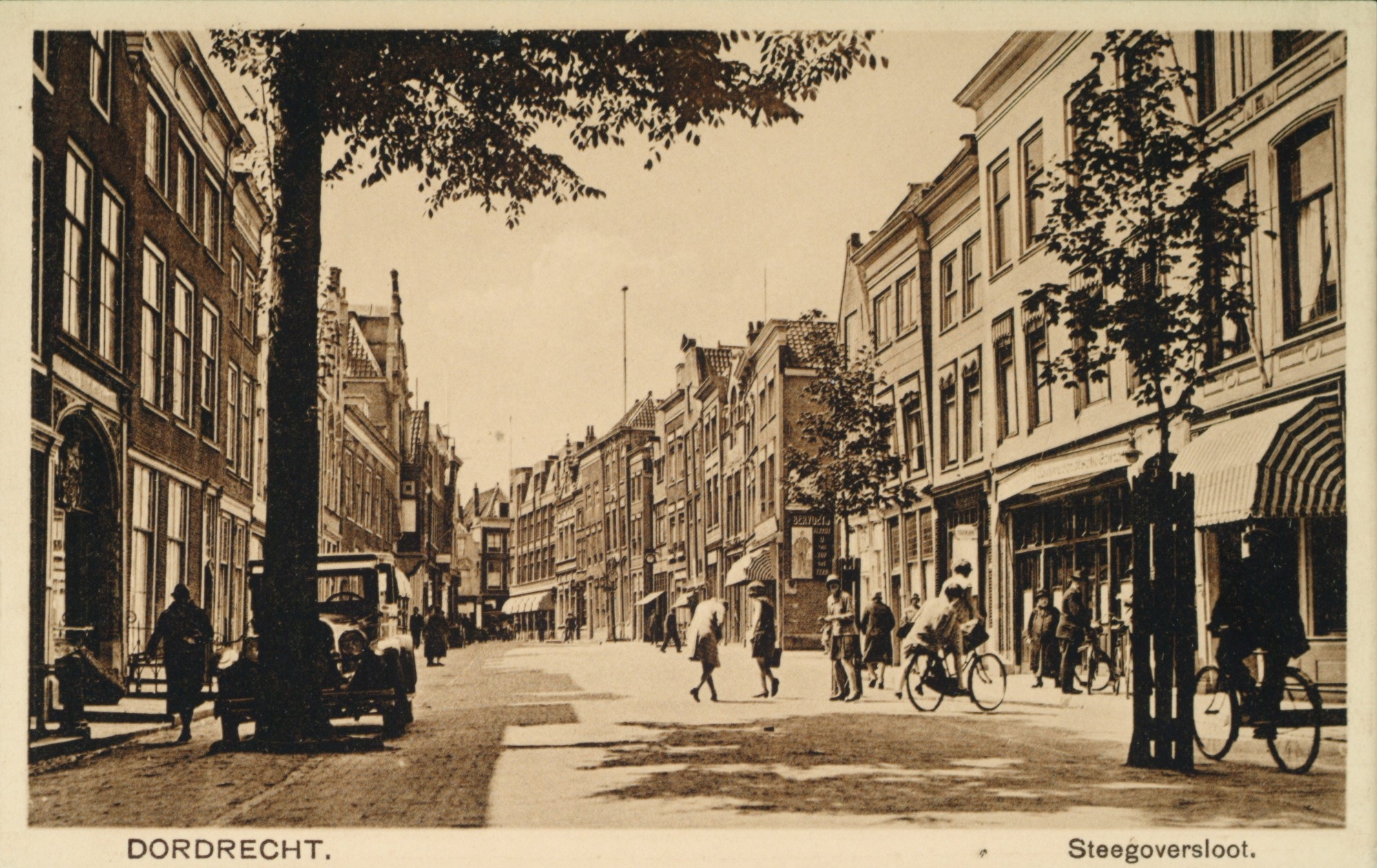 Het Steegoversloot gezien richting Voorstraat omstreeks 1929. Rechts de …