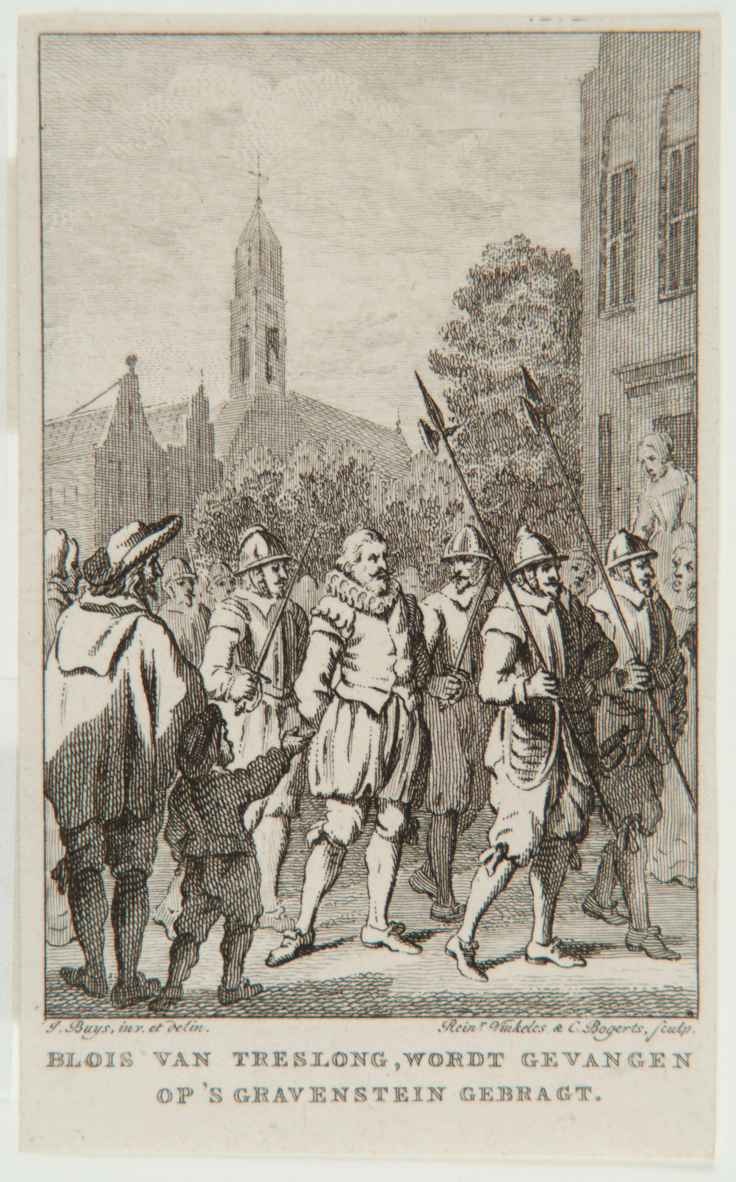 - Portret van Willem van Bloys, gezegd Treslong, omringd door soldaten