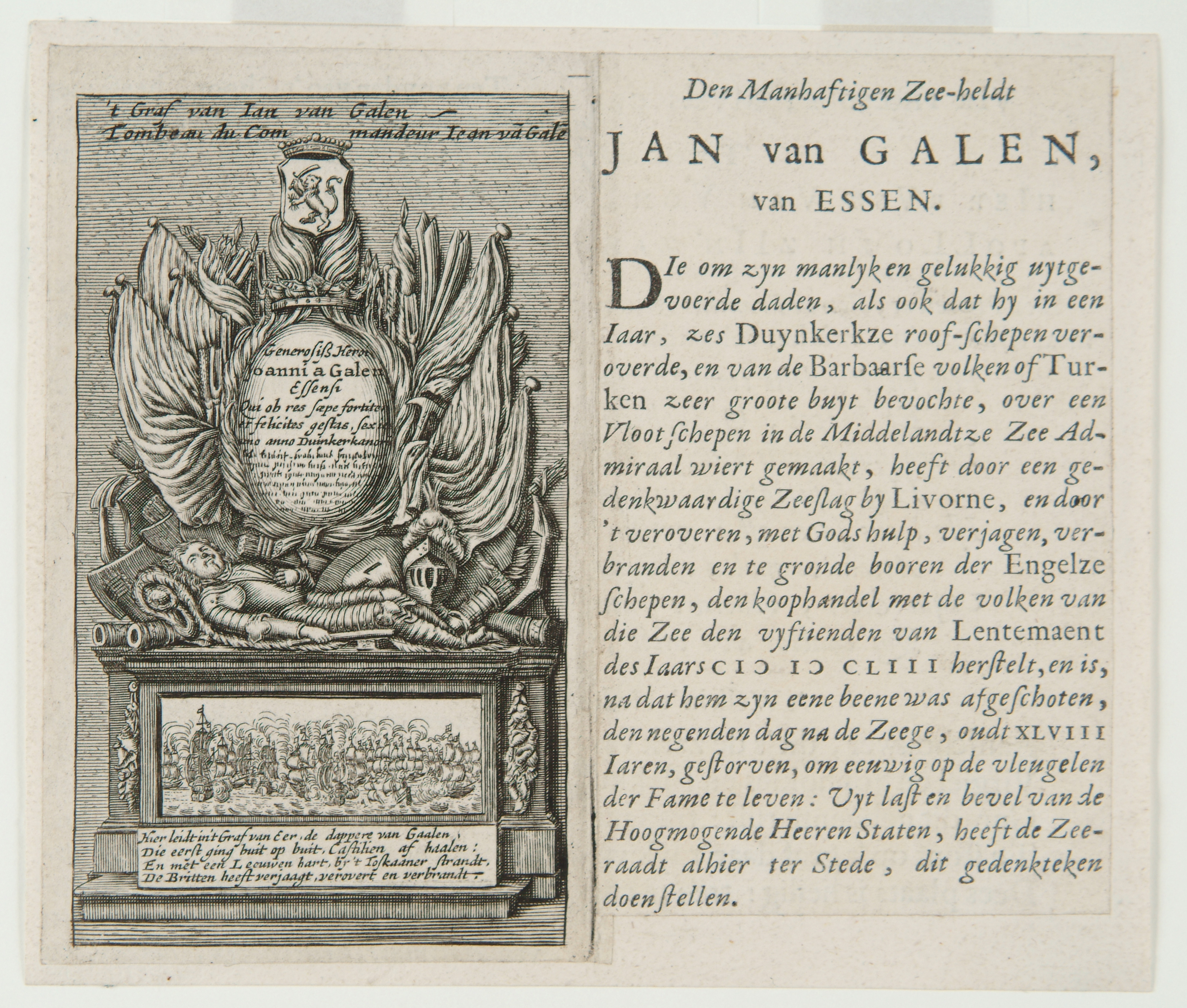 Graftombe van Johan van Galen, met gedrukte korte levensbeschrijving