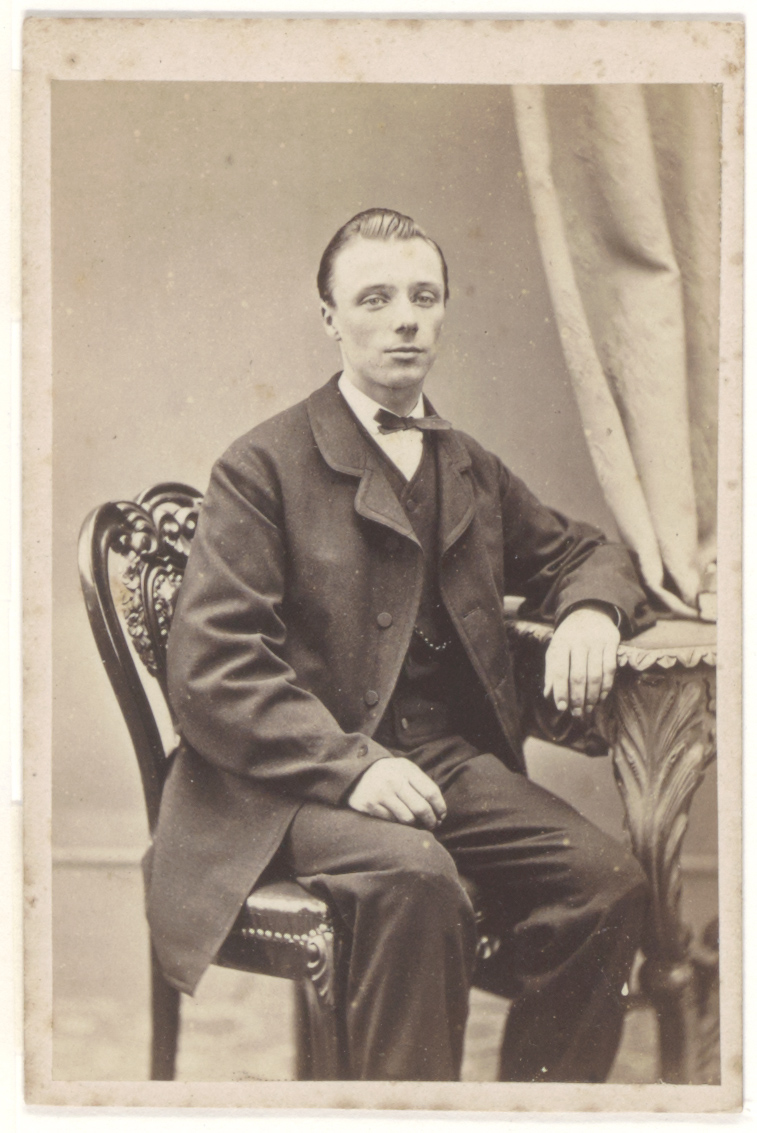 Portret van een zittende man, de linkerelleboog op tafel rustend; ca. 30 jaar oud.