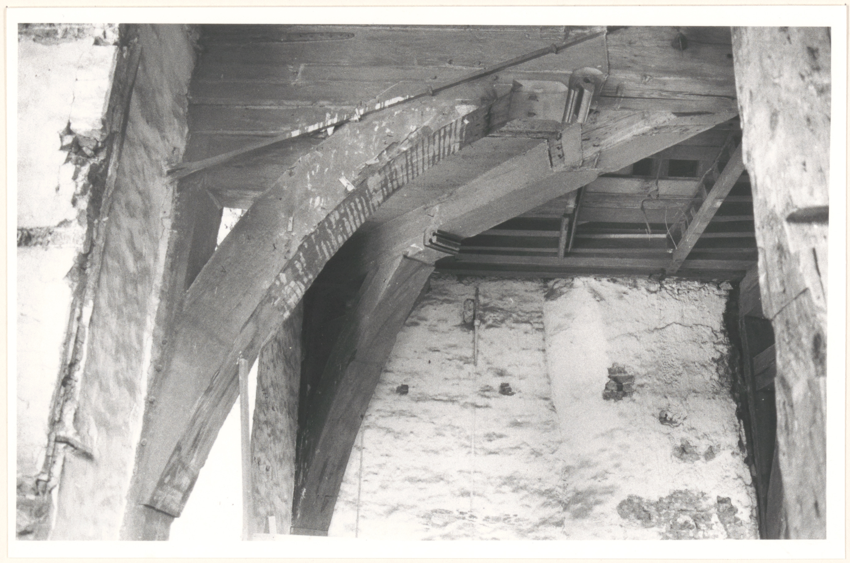 - Onderdeel uit een serie afbeeldingen die de sporen laten zien van de bouwgeschiedenis, welke tevoorschijn kwamen bij de restauratie; b.v. gewelven, doorgangen, muren, balken, enz. Deze foto's zijn voor een deel als illustratie verwerkt in de studie 'Het stadhuis te Dordrecht' door M.E. Stades-Vischer (bibl. 83-41).