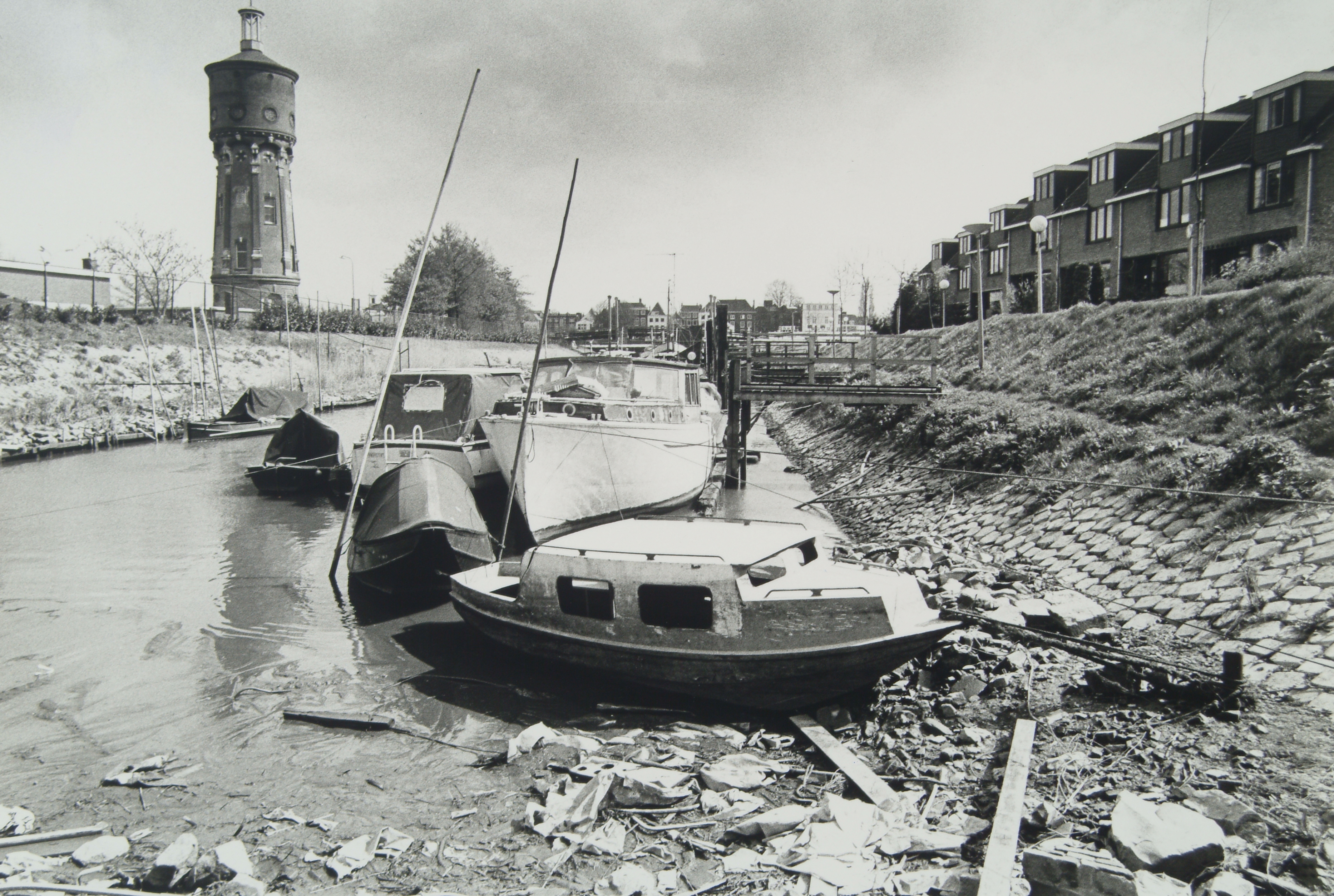 - Pleziervaartuigen in de Oostkeetshaven te Zwijndrecht met links de watertoren