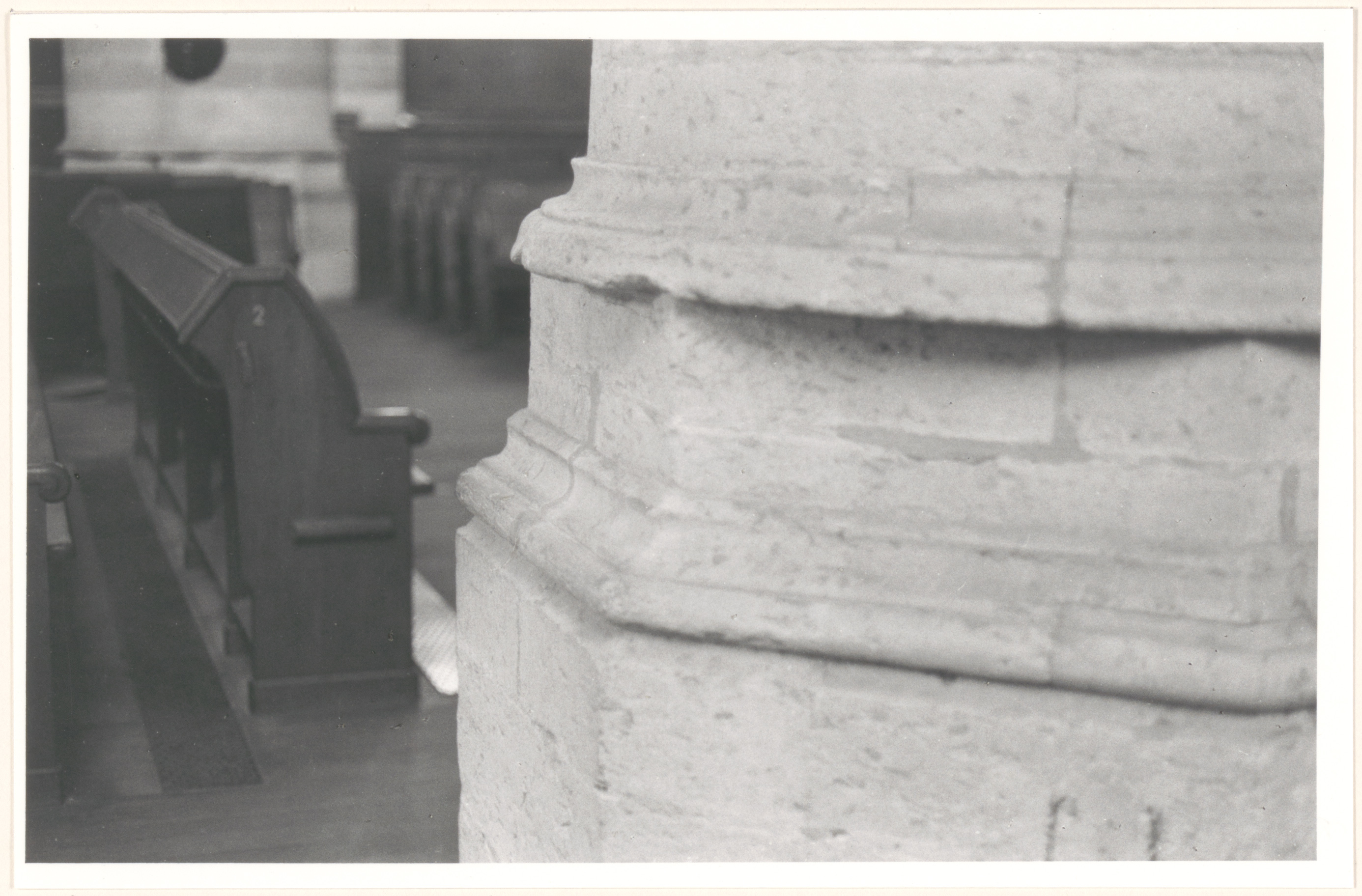 - Profiel van het basement van een van de zuilen in het middenschip van de Grote Kerk; links kerkbank nr. 2.