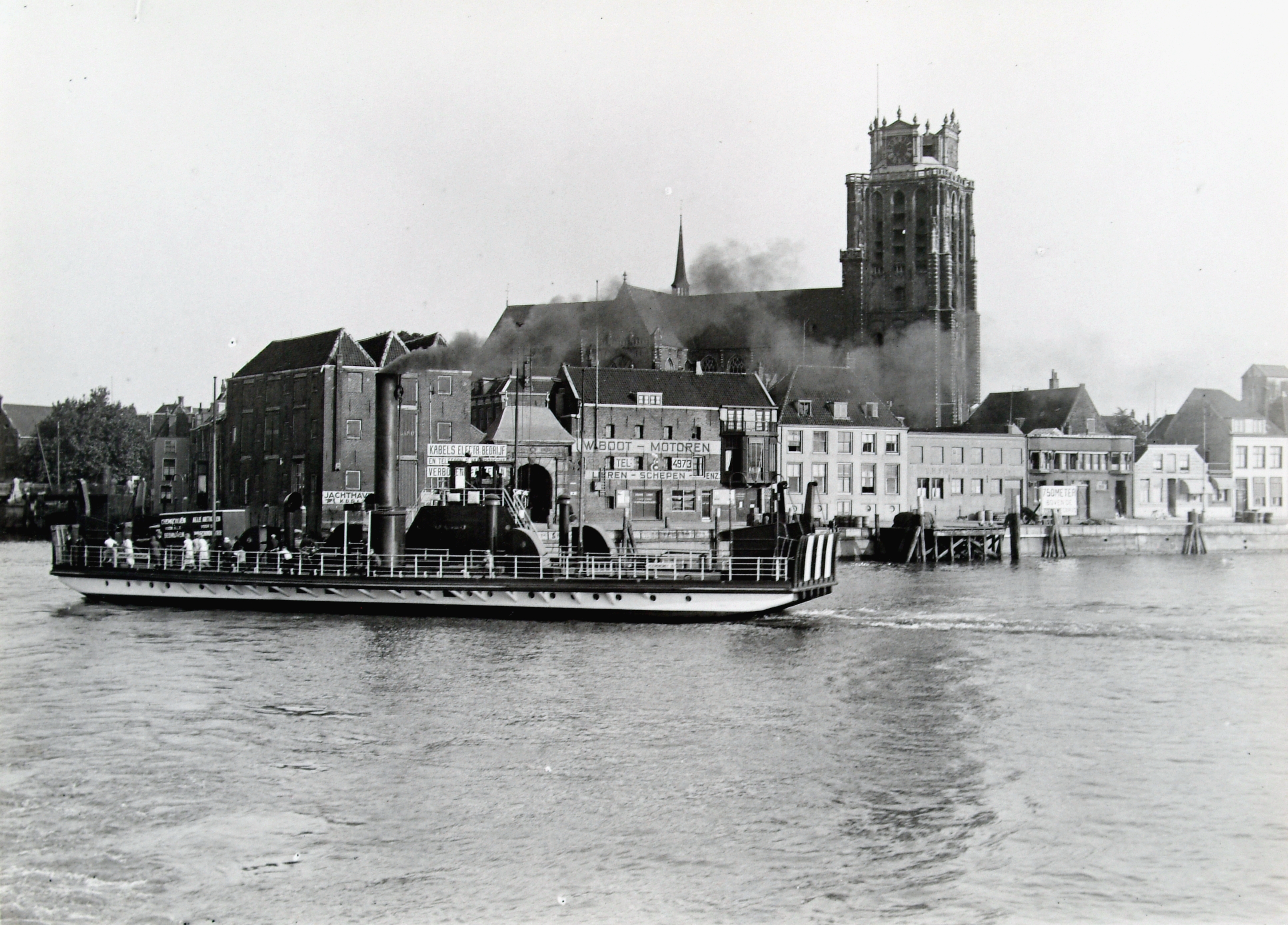 Gezicht over de Oude Maas op de Hooikade en de veerpont