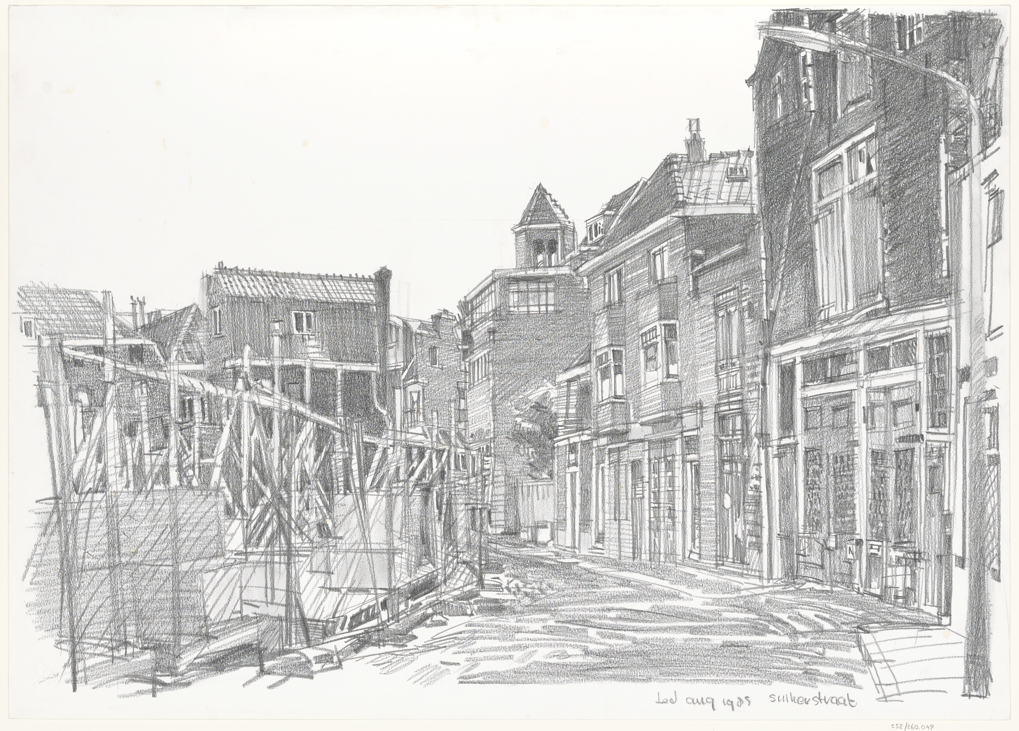 - De Suikerstraat gezien richting de Boogjes. Links de fundering voor nieuwbouw.
