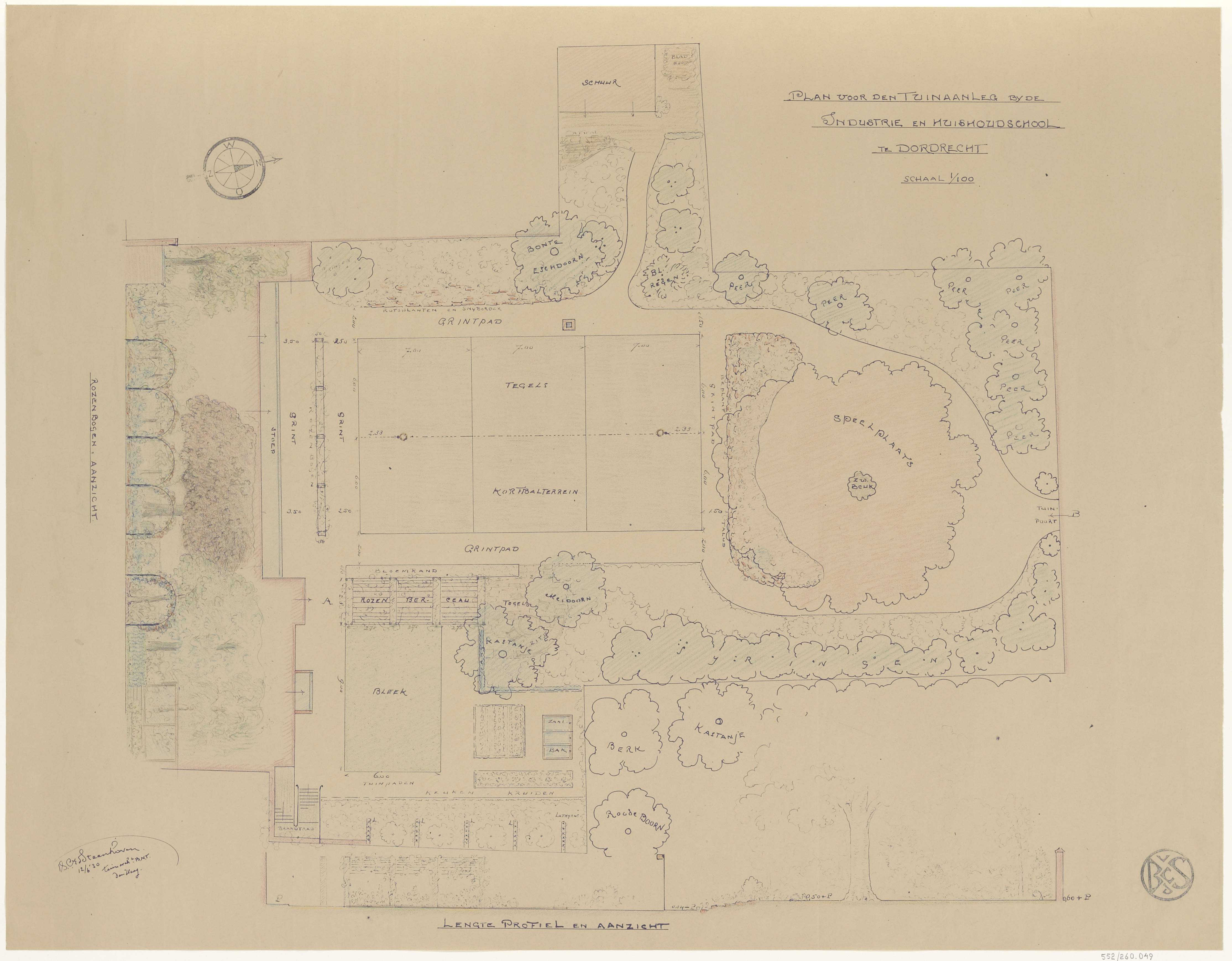 Een niet-gerealiseerd plan voor tuinaanleg achter de Industrie- en Huishoudschool …