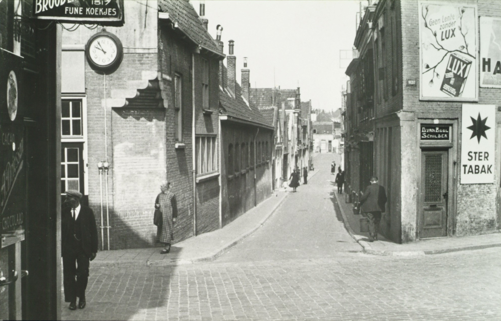 - Heer Heymansuysstraat vanaf de Vest. In het pand rechts is schilder D. van Buul gevestigd.
