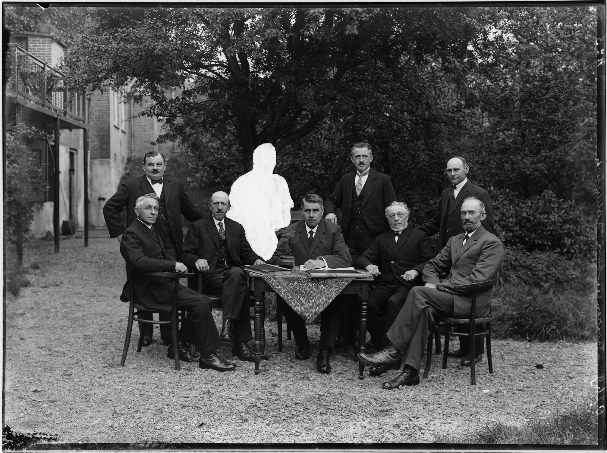 Groepsportret medewerkers, onder wie D. Maaskant, van de Boerenleenbank te Ridderkerk