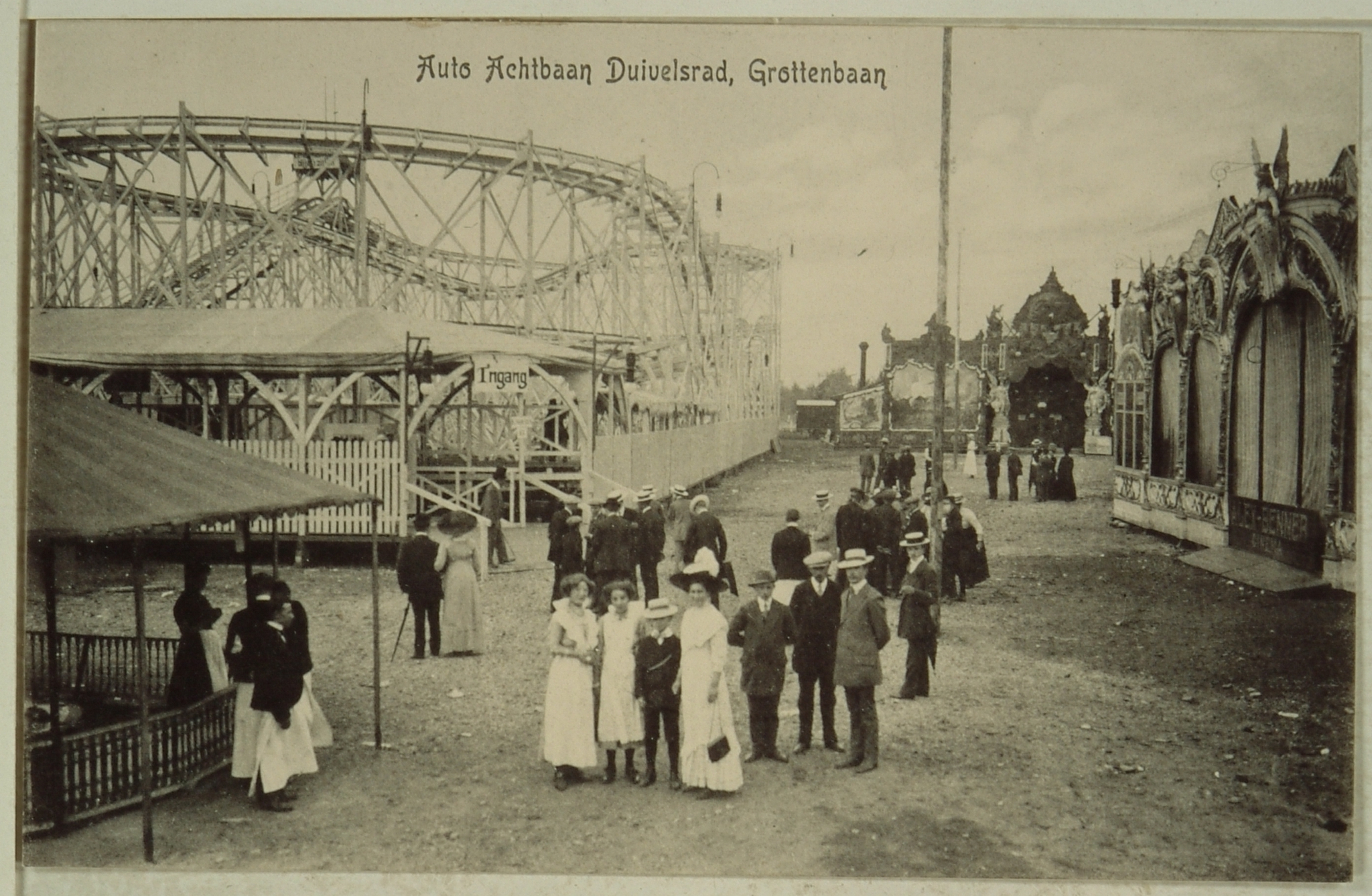 Het attractieterrein met een deel van het lunapark van de "Tentoonstelling Dordrecht en Omstreken", (6-7-1912/15-9-1912).