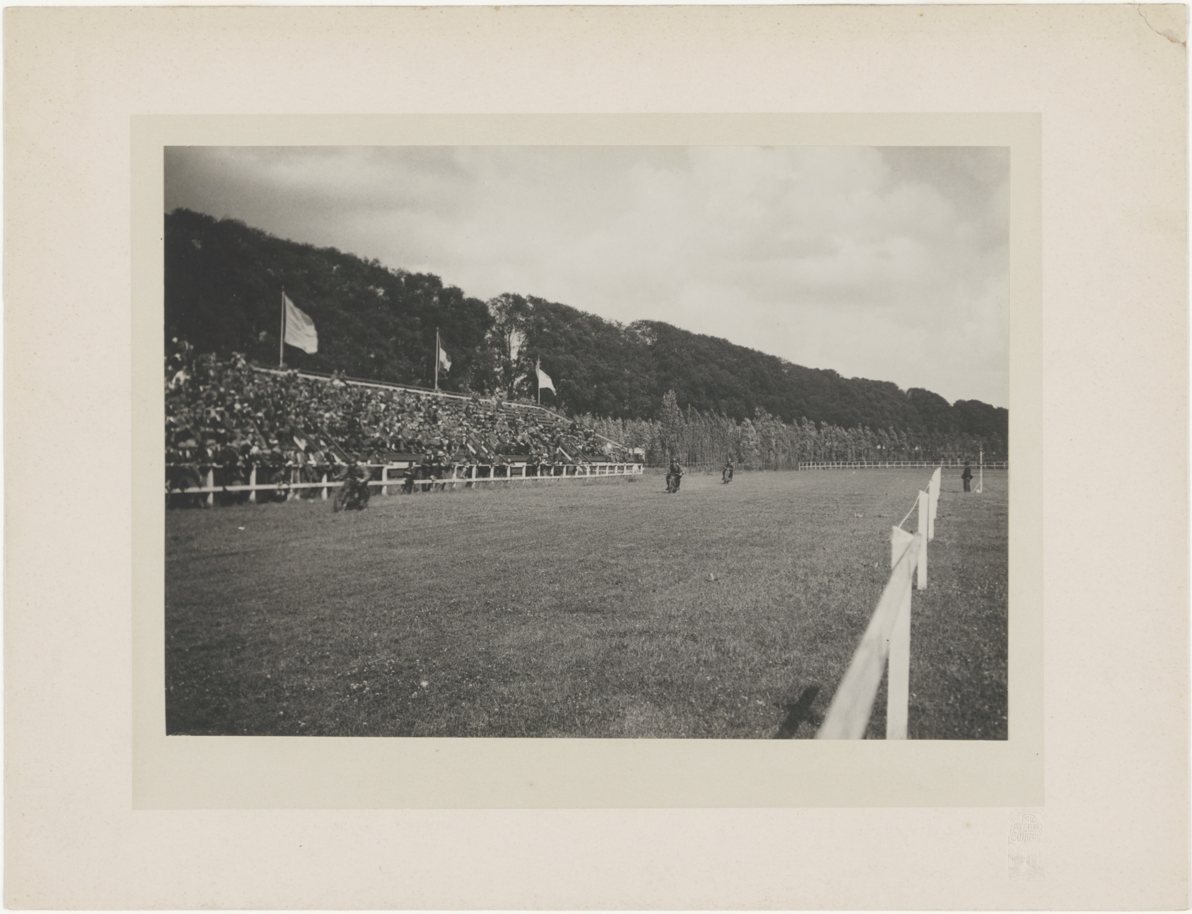 Nationale motorwedstrijden in het sportpark aan de Reeweg. De bomen staan aan de …