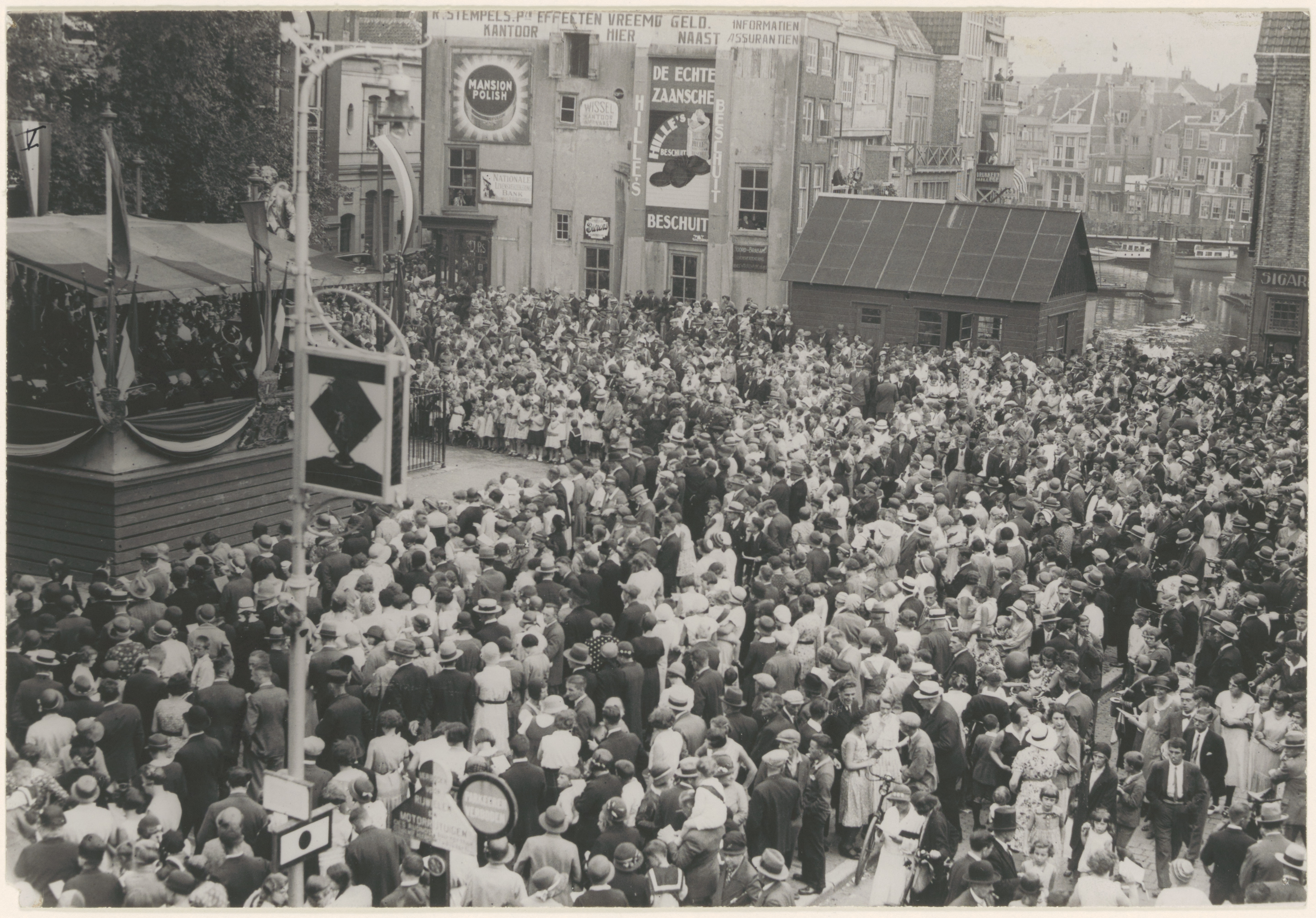 - bruggen feestelijkheden gevelreclame havens muziektenten publiek / toeschouwers