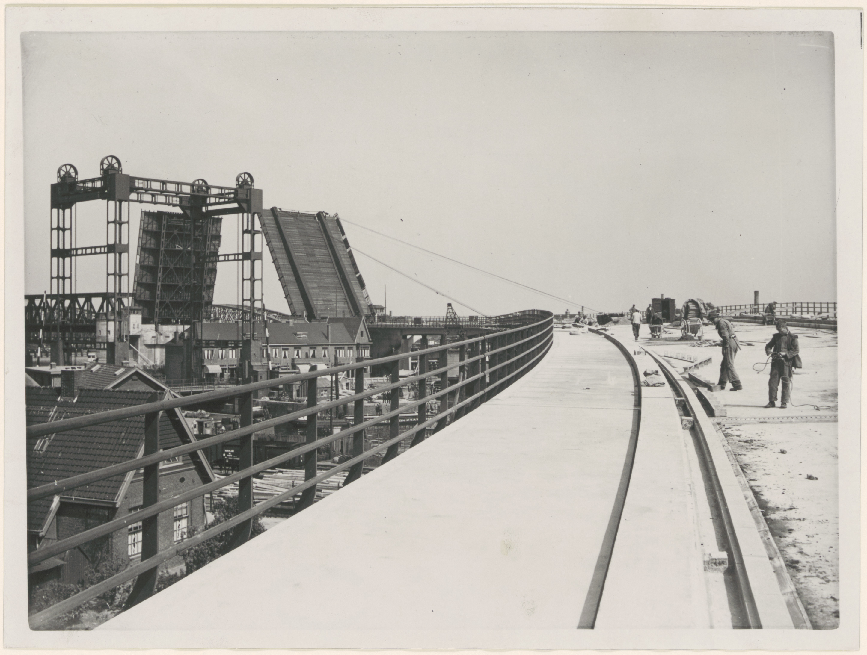 - Bouw van de oprit voor de verkeersbrug over de Oude Maas over de Weeskinderendijk, Spoorweghaven en Dokweg. De heftoren is van de Dokbrug.
