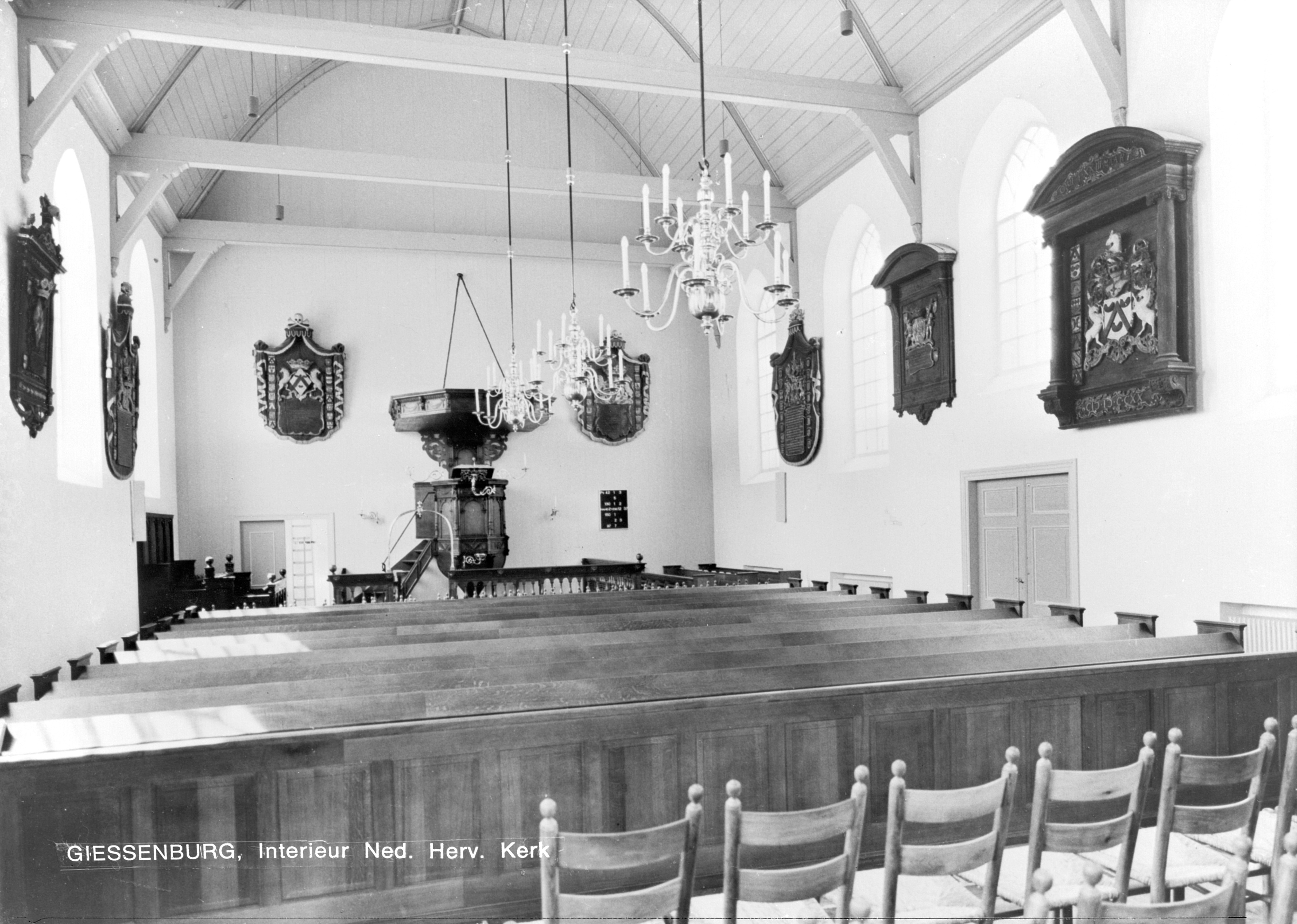 Interieur van de Nederlands Hervormde Kerk aan de Kerkweg, hoek Dorpsstraat in Giessenburg.