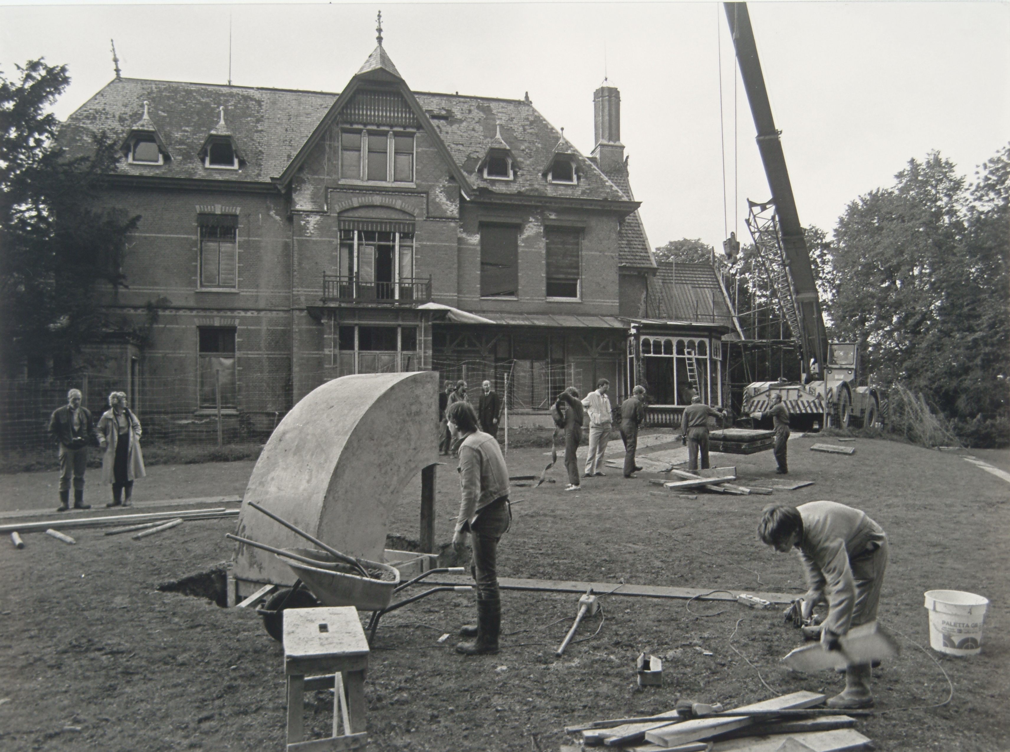 Inrichting van een beeldenexpositie bij villa Sorghvliet op landgoed Dordwijk