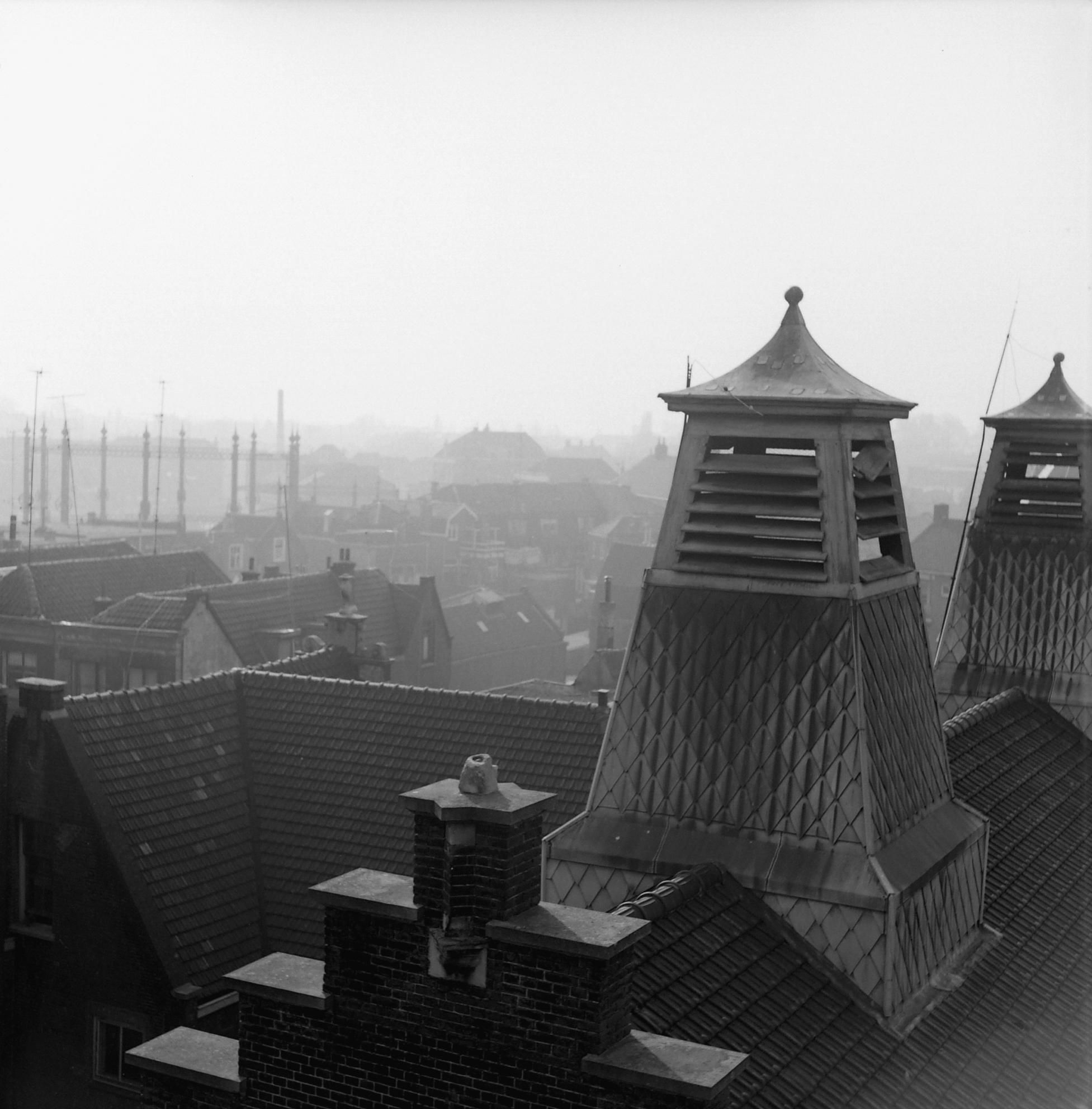 Het dak met de torentjes van de Gasfabriek aan de Riedijk vlak voor de sloop