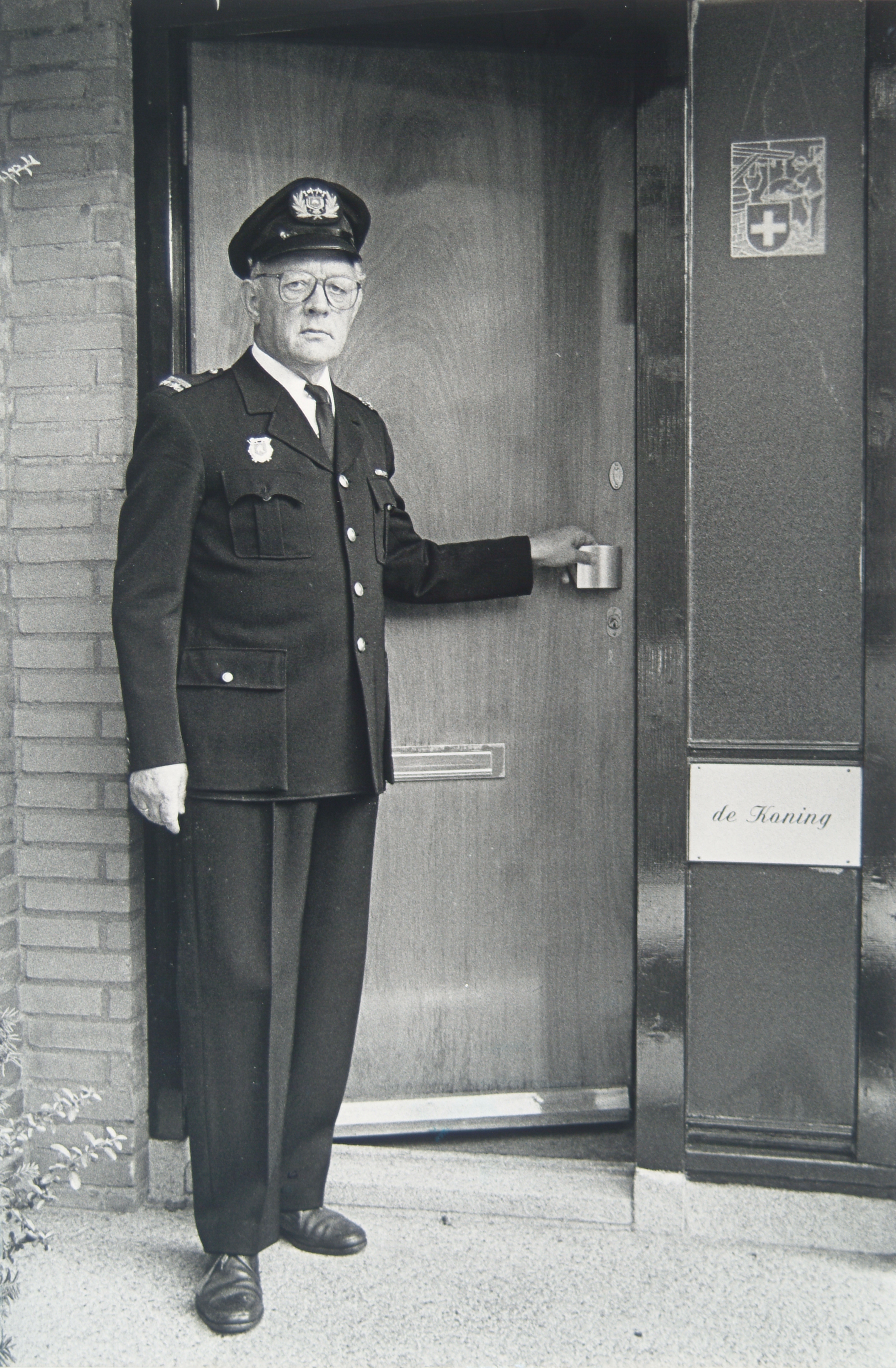 Dhr. De Koning, commandant van de brandweer te Zwijndrecht, bij zijn vertrek