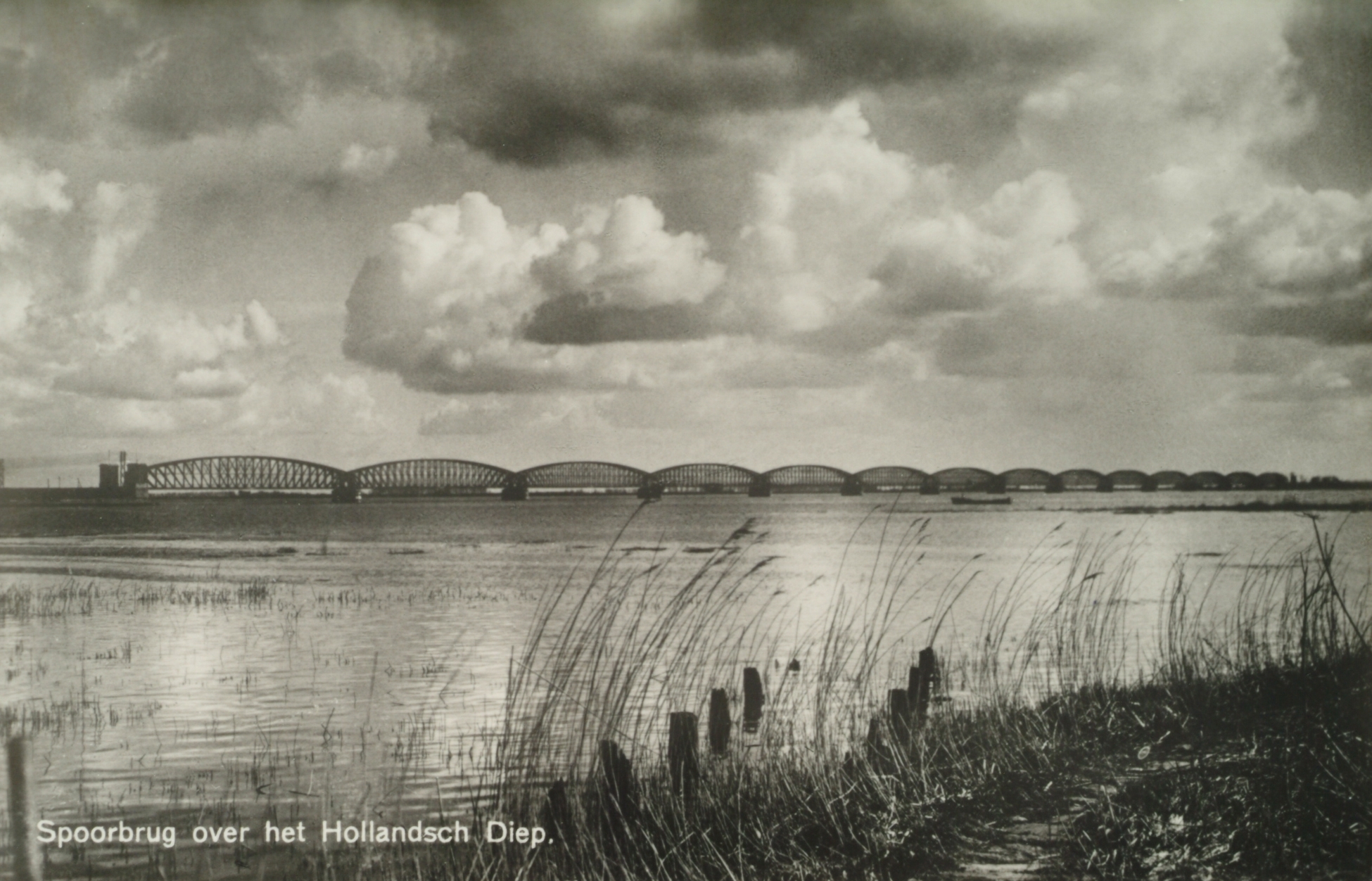 - Spoorbrug over het Hollandsch Diep. Als auteur staat "Waterbeek" vermeld doch dezelfde opname kennen we ook van J. van de Weg, Dordrecht., zie bijv. 552_405982.