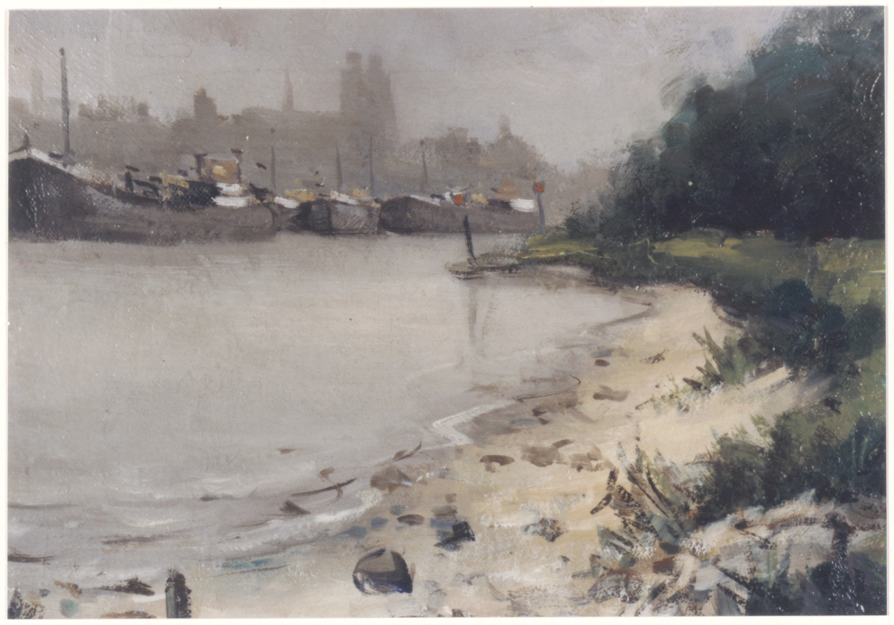 - Foto van schilderij gebruikt als illustratie voor de uitnodiging voor de tentoonstelling 'Water rond Dordrecht rivieren en Biesbosch' van 1 t/m 9 november 1986 gehouden door kunsthandel 'De Rode Deur', Vrieseweg 129. De tentoonstelling werd gehouden in het Hof.