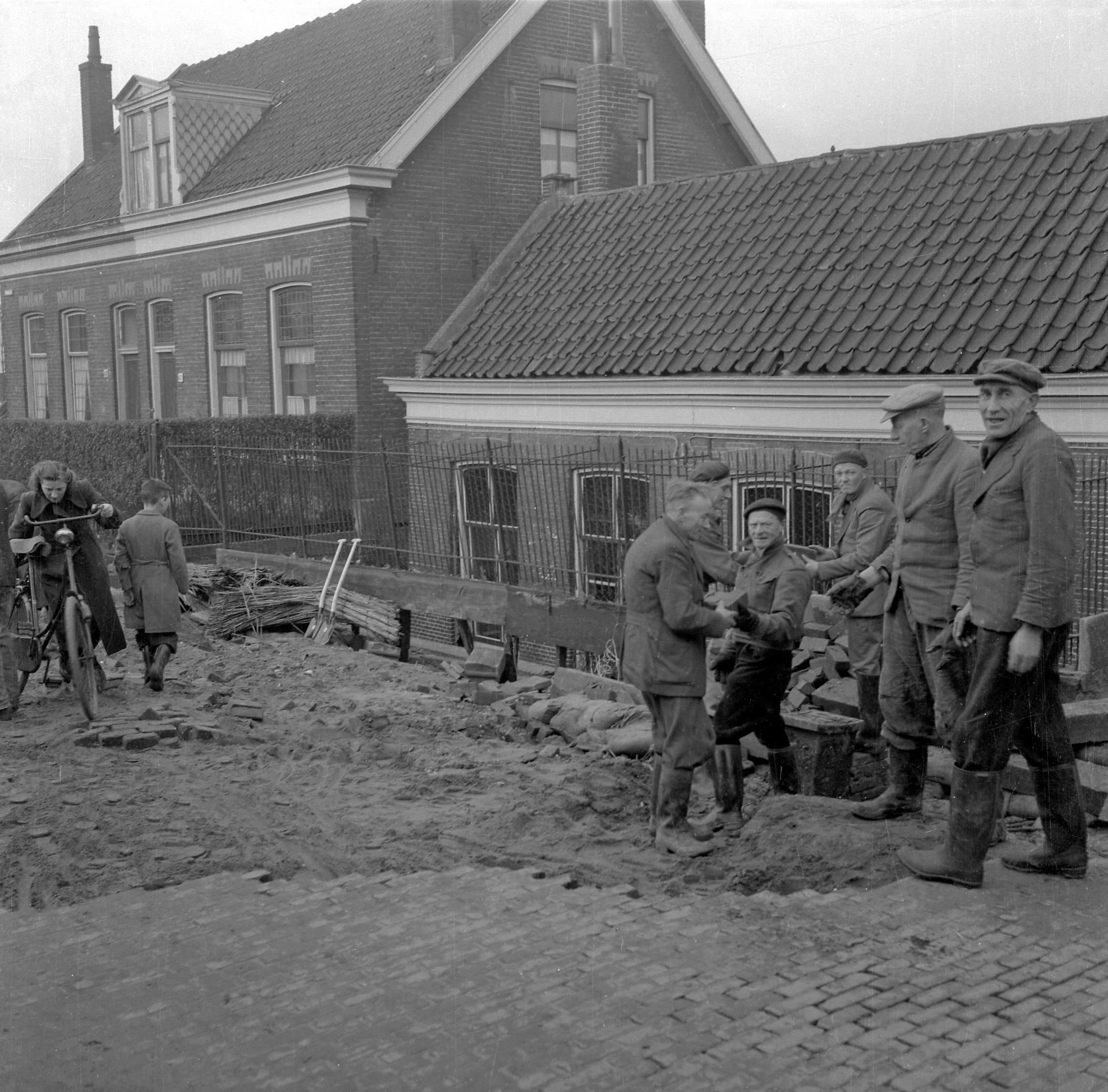 Schade en herstelwerkzaamheden na de watersnoodramp in 1953 in Zwijndrecht.