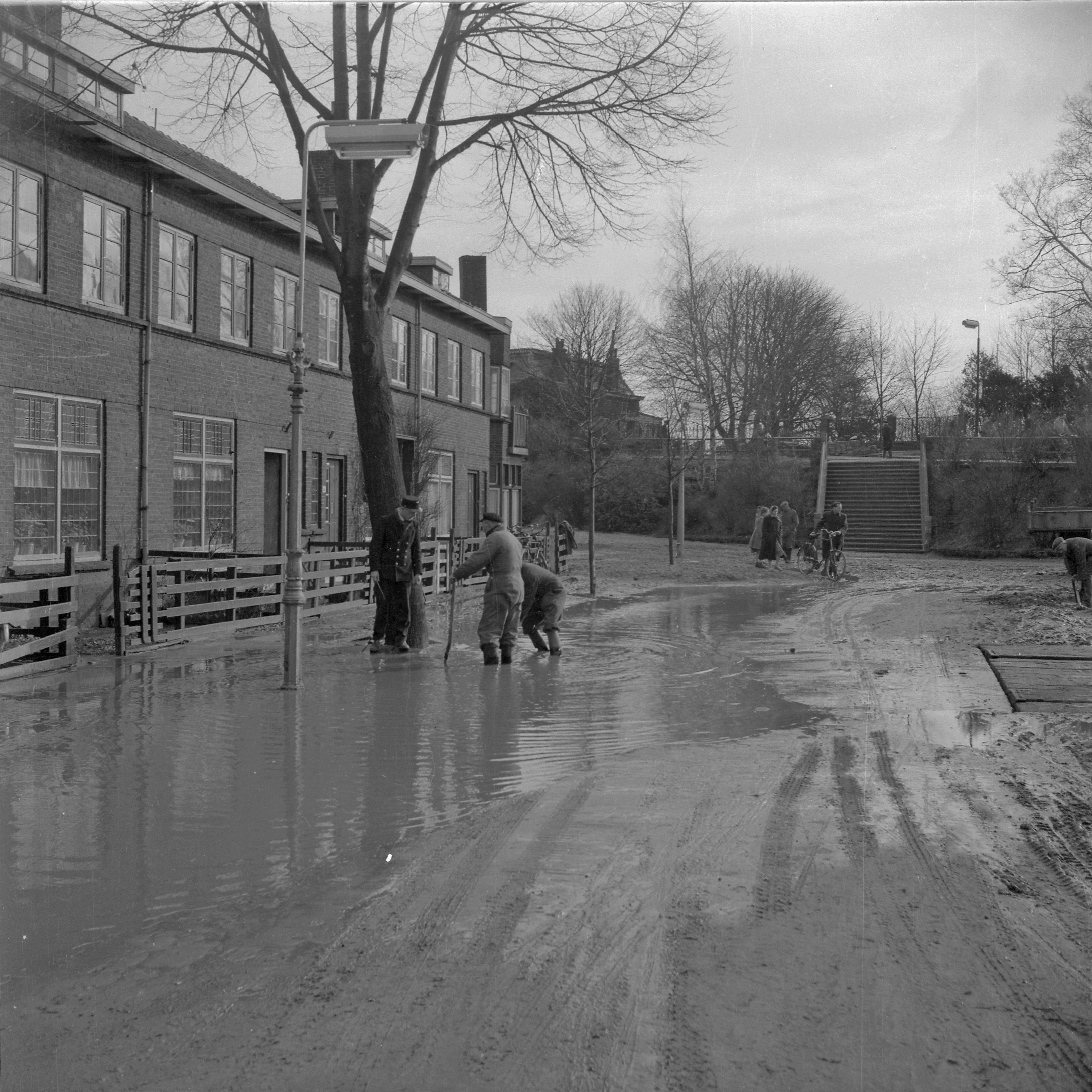Schade en herstelwerkzaamheden na de watersnoodramp in 1953 in Zwijndrecht.