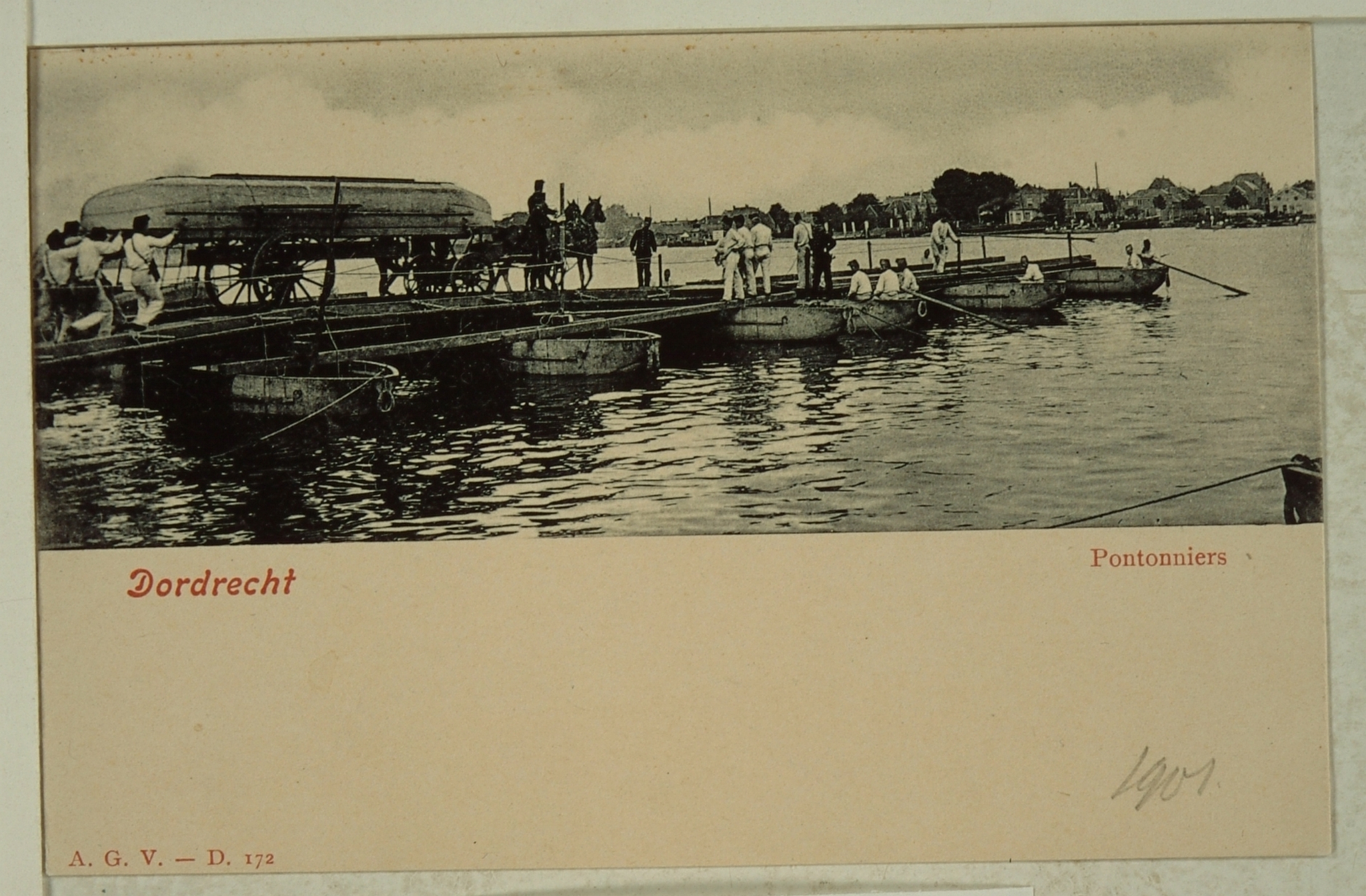 - Oefening Korps Pontonniers 1900-1905; bouwen pontonbrug
