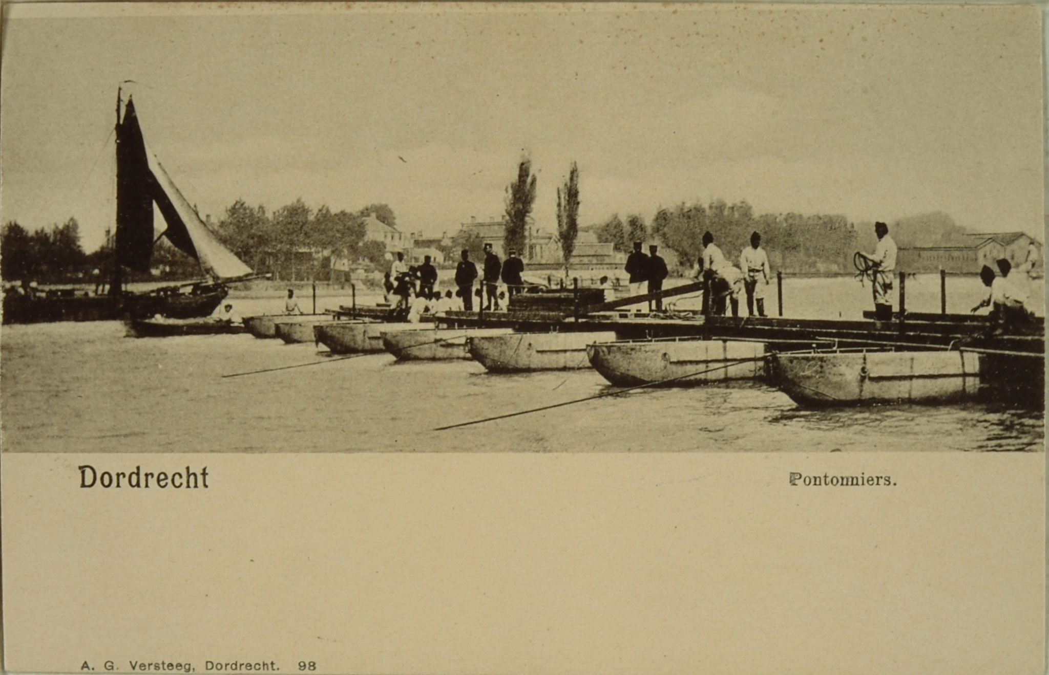 - Oefening Korps Pontonniers 1900-1905; bouwen pontonbrug